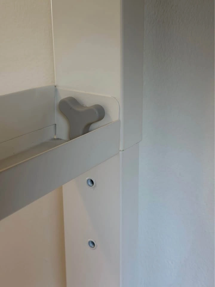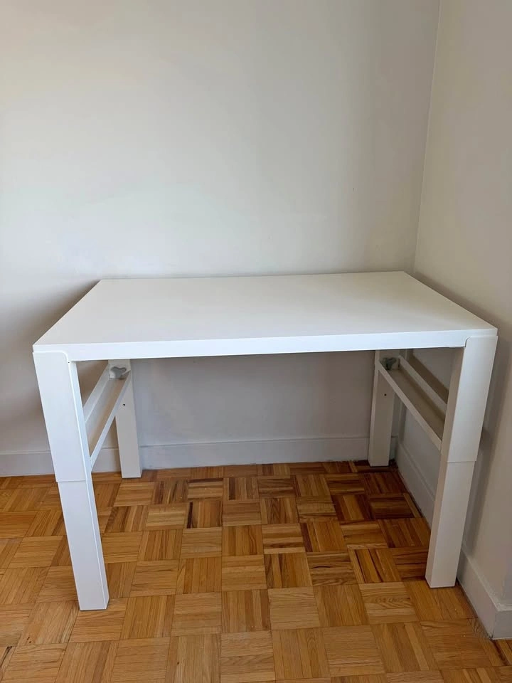 The desk is easily adjusted to 23", 26", or 28" using the knobs on the legs. You can keep cables and extension cords organized by placing them in the cable holders between the front and back legs.