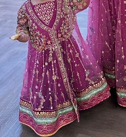 Wedding formal dress, perfect for a close family wedding. This is a Size XL, 4-piece set including a heavily embellished jacket, inner shirt, lengha, and dupatta. The mini version is perfect for a 2-4 year old and includes the jacket and inner shirt. This is an exact replica of a Mina Hasan dress. Worn once and in perfect condition. Asking $650 OBO for both.