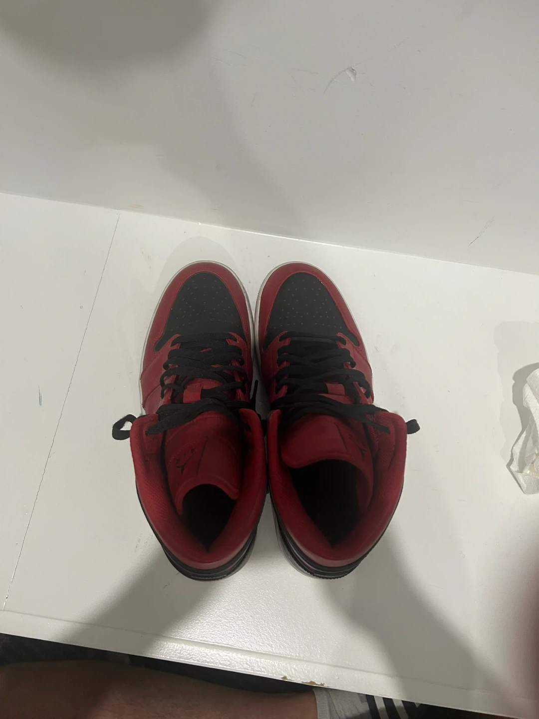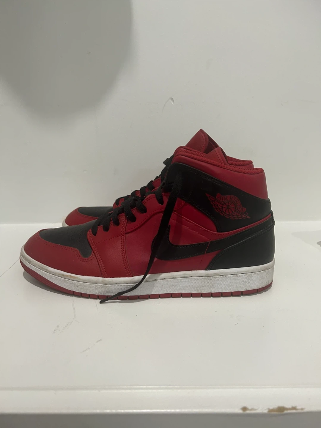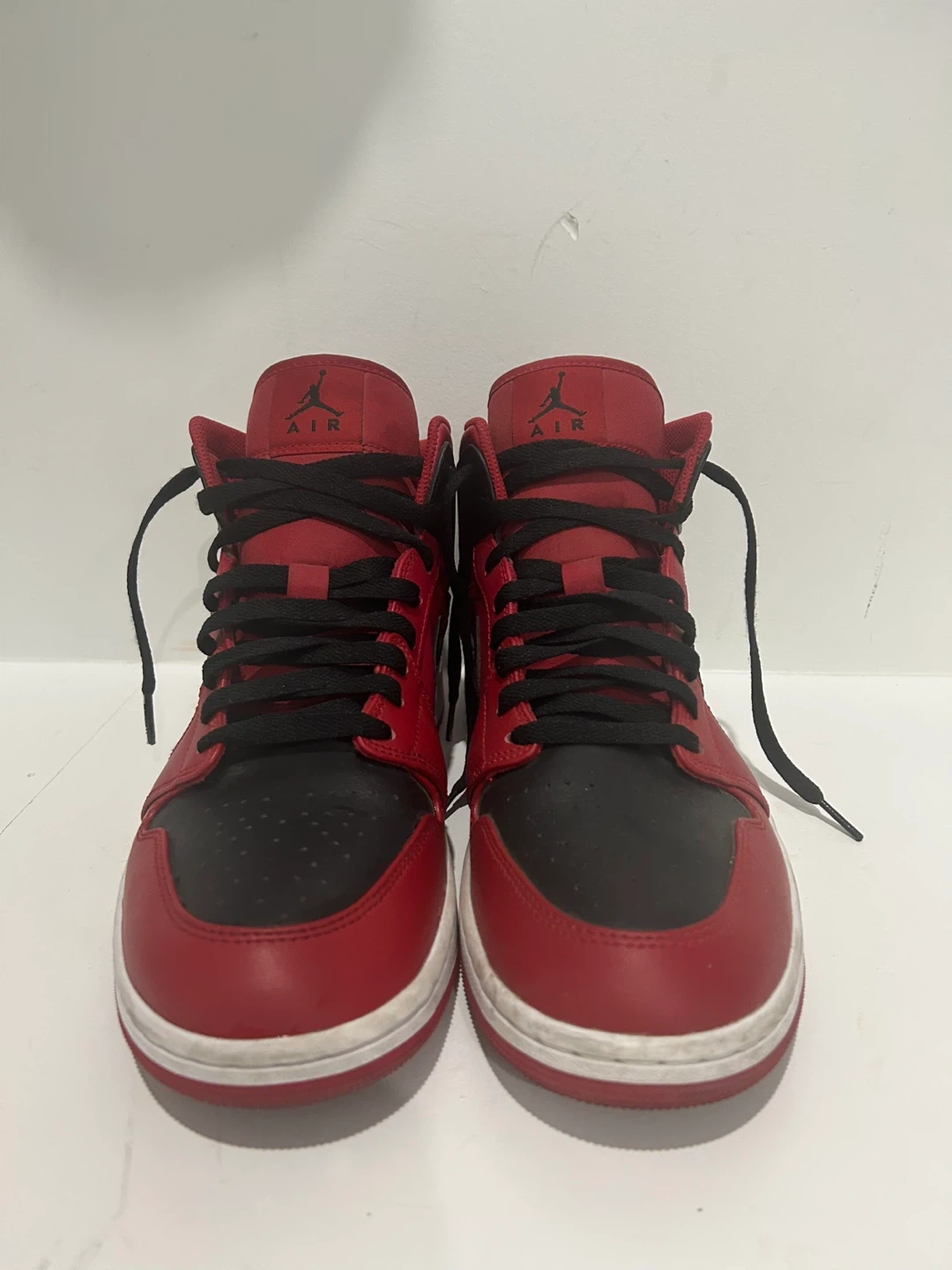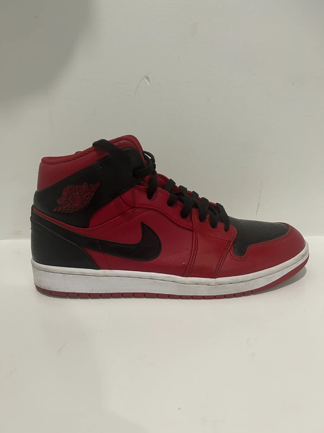 These are a pair of Air Jordan 1 Mid SE sneakers in the 'Light Smoke Grey' colourway. They're a size 10.5 and made from leather and synthetic materials. These kicks are perfect for everyday wear or hitting the court!