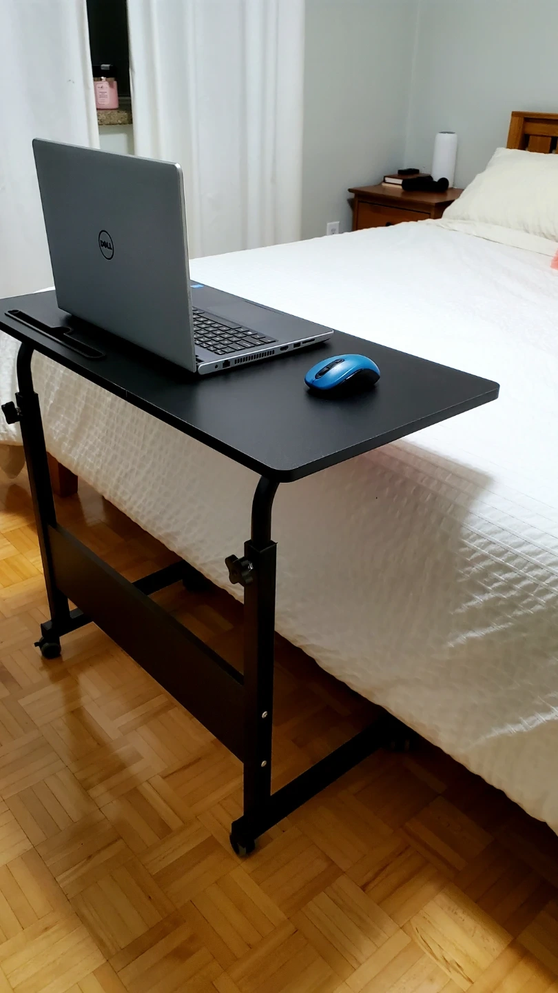 This portable desk is new and comes in a box, but assembling shouldn't take much effort. The height is adjustable, the wheels are lockable. Please don't ask for lower price (orig is $138 inc. tax), so save $$.