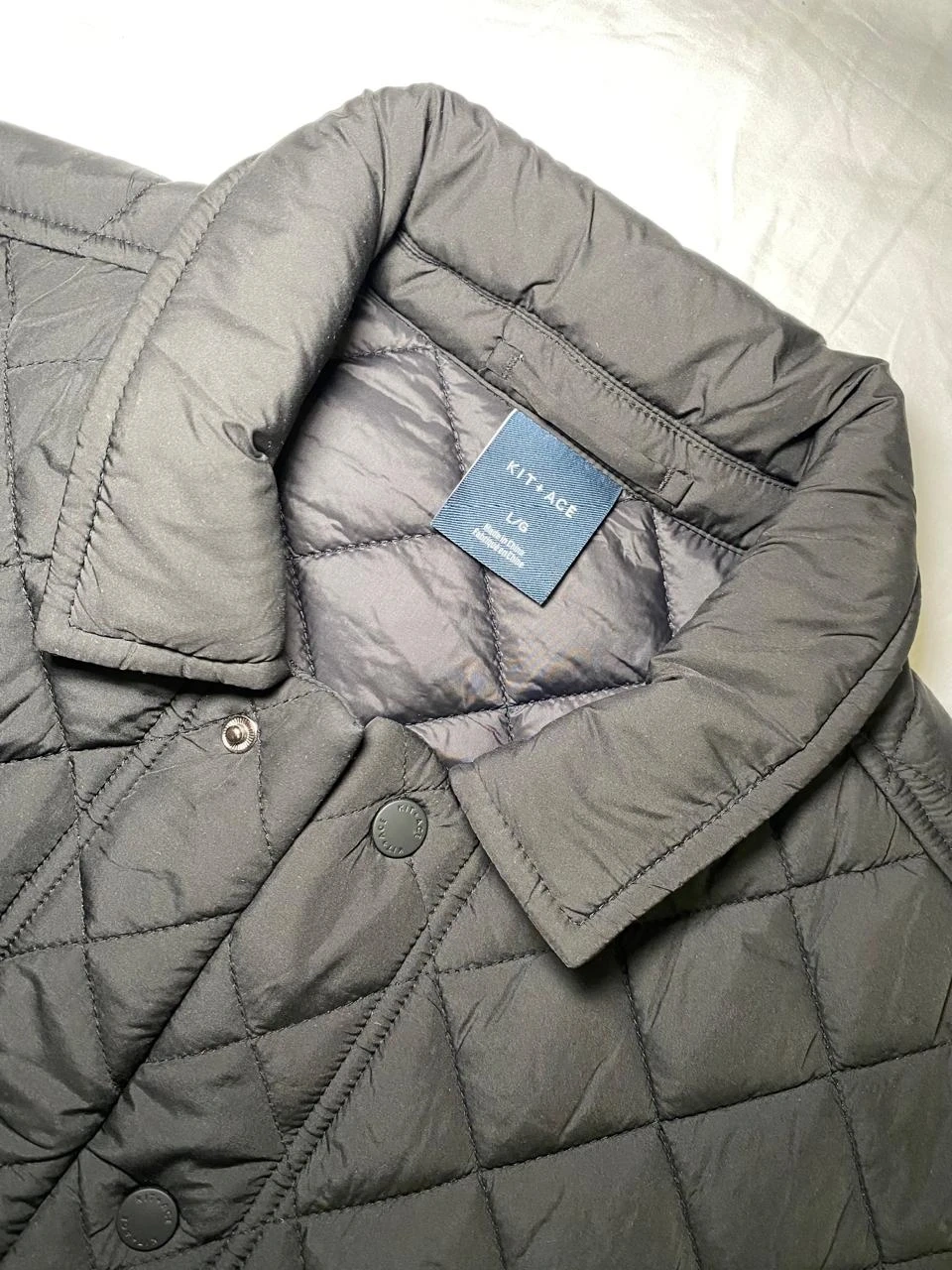This is a black quilted vest from KIT + ACE. It features snap button closures and two side pockets. The vest is made of a smooth material and is perfect for layering.