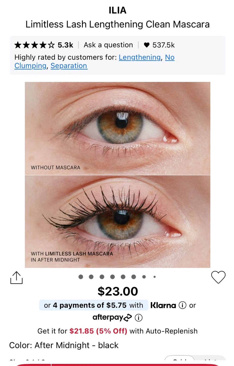 ($27 value) ILIA Limitless Lash Lengthening Clean Mascara
