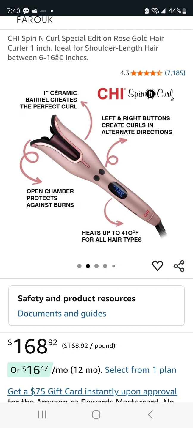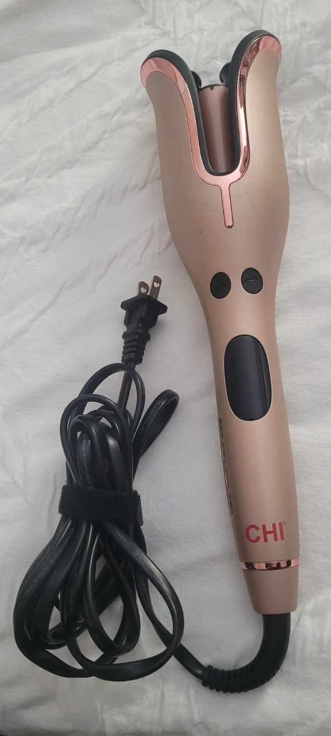 CHI Spin N Curl Special Edition Rose Gold Hair Curler, 1 inch barrel. Perfect for shoulder-length hair. The open chamber protects against burns and heats up to 410°F for all hair types.
