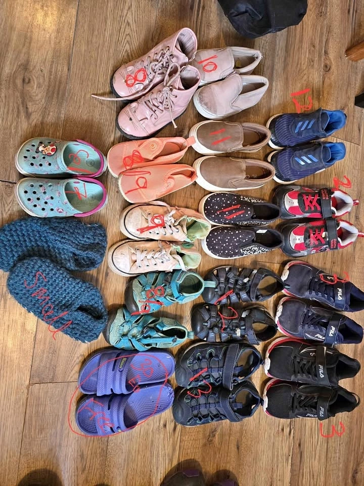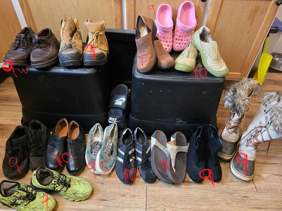 Shoes and boots that have been in storage as they no longer fit anyone. Sizes are listed with each pair. Well-known brands. Kids' shoes/boots and adult shoes/boots are $1 each pair, or bundle and make an offer. Pick up is in Sulphide (Tweed).