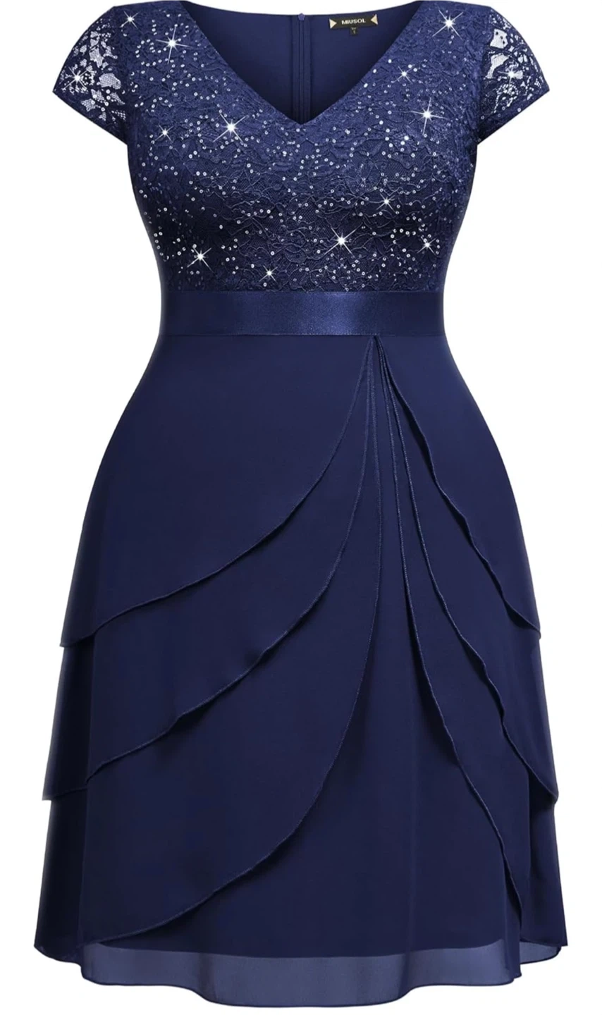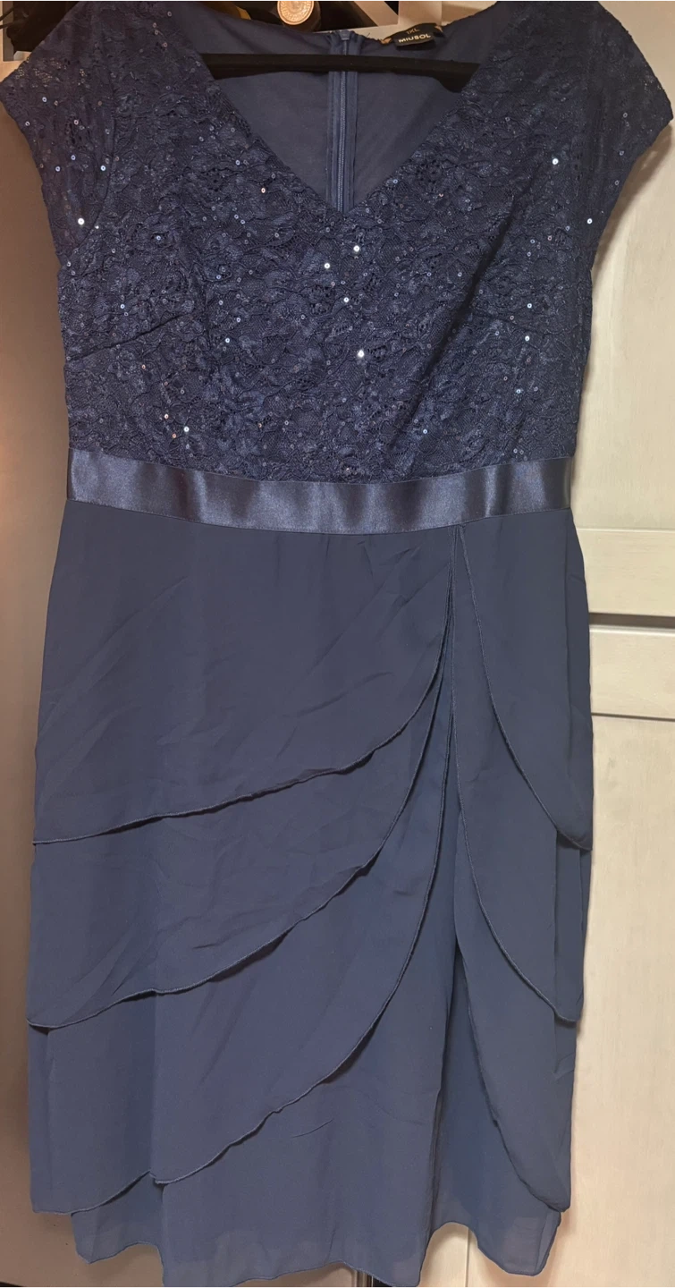 Brand New!!! This is a beautiful navy blue party dress from Miusol, features a lace bodice with delicate sequin detailing and a flattering A-line silhouette. Perfect for a special occasion!