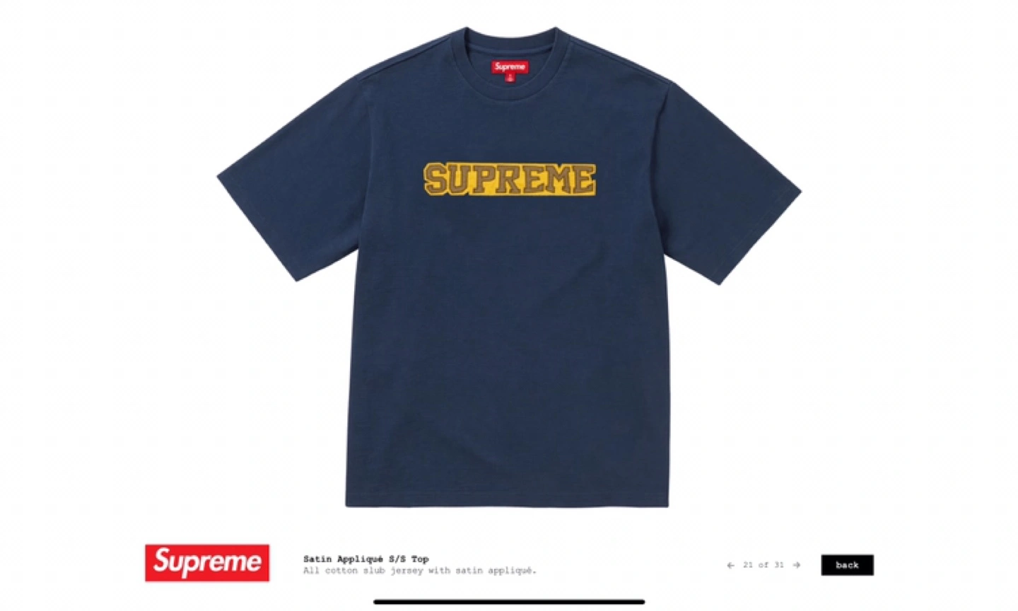A Supreme t-shirt with a satin appliqué design. Made with 100% cotton. Size large.brand new with receipt