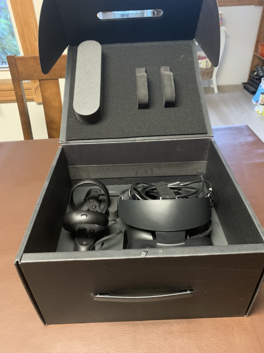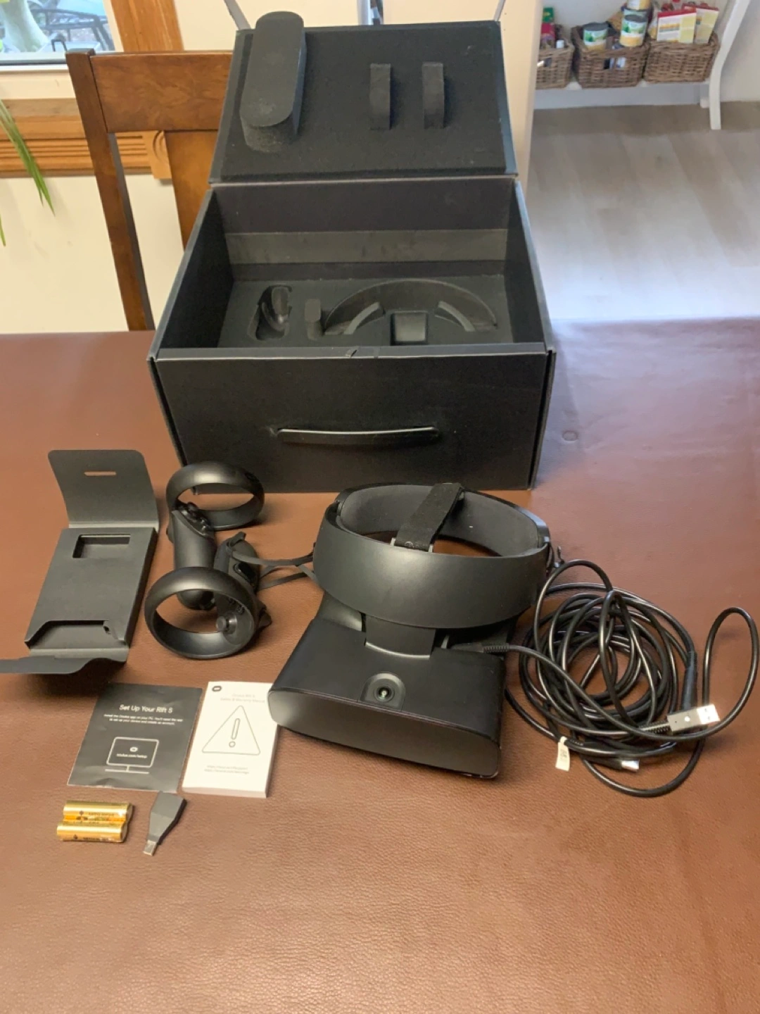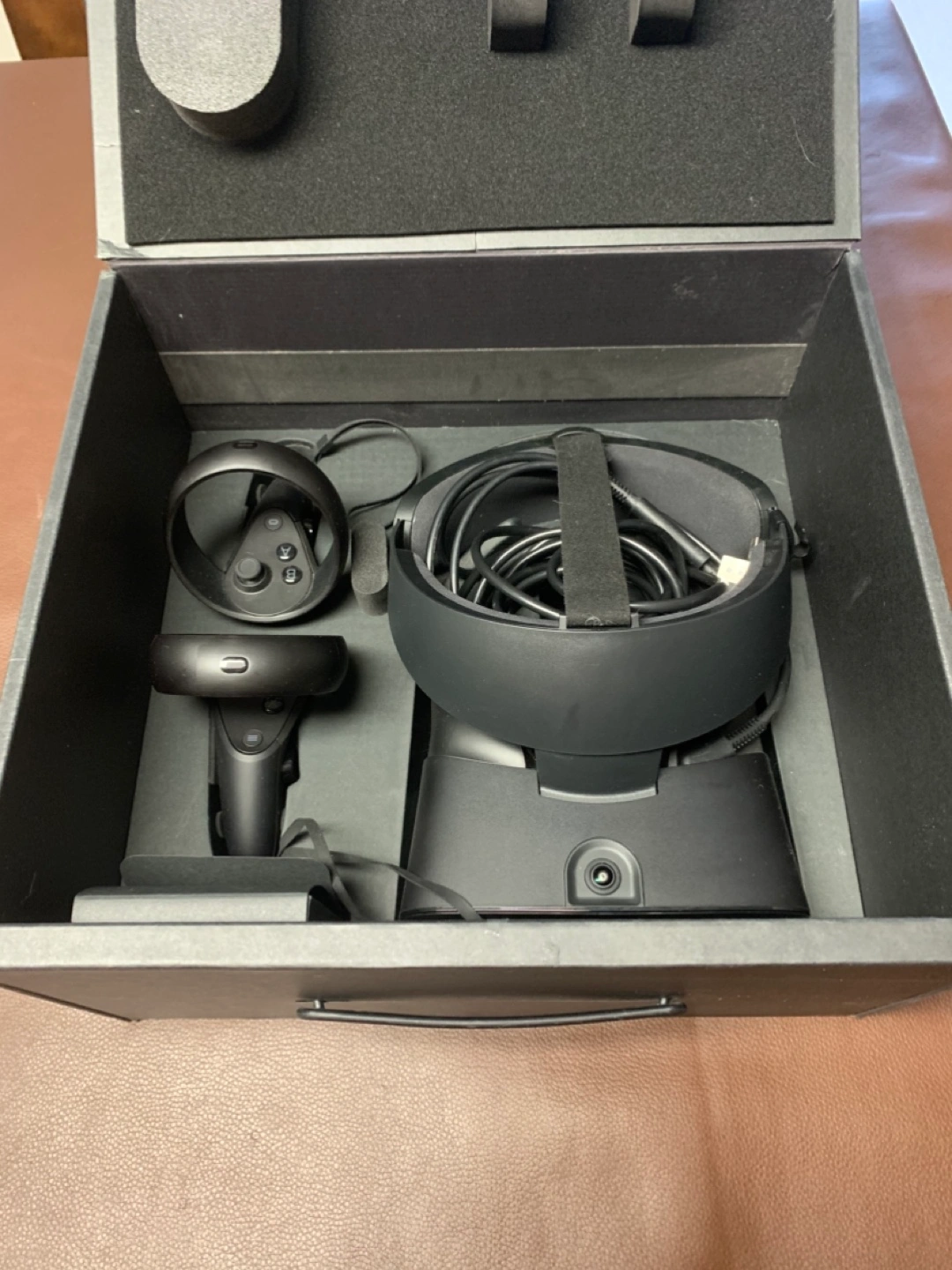 Oculus Rift S virtual reality headset. Includes headset, controllers, and all original packaging. Excellent condition, never used. Ready for immersive gaming.