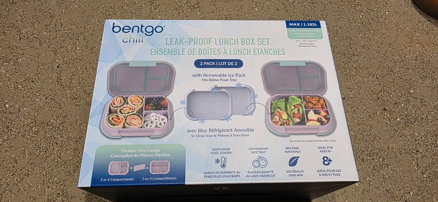 Brand new in box, usually a single unit sells for over $30. Bentgo Chill leak-proof lunch box set. Customizable compartments offer the option of 3 or 4 compartments. Includes removable ice pack to keep food cool.