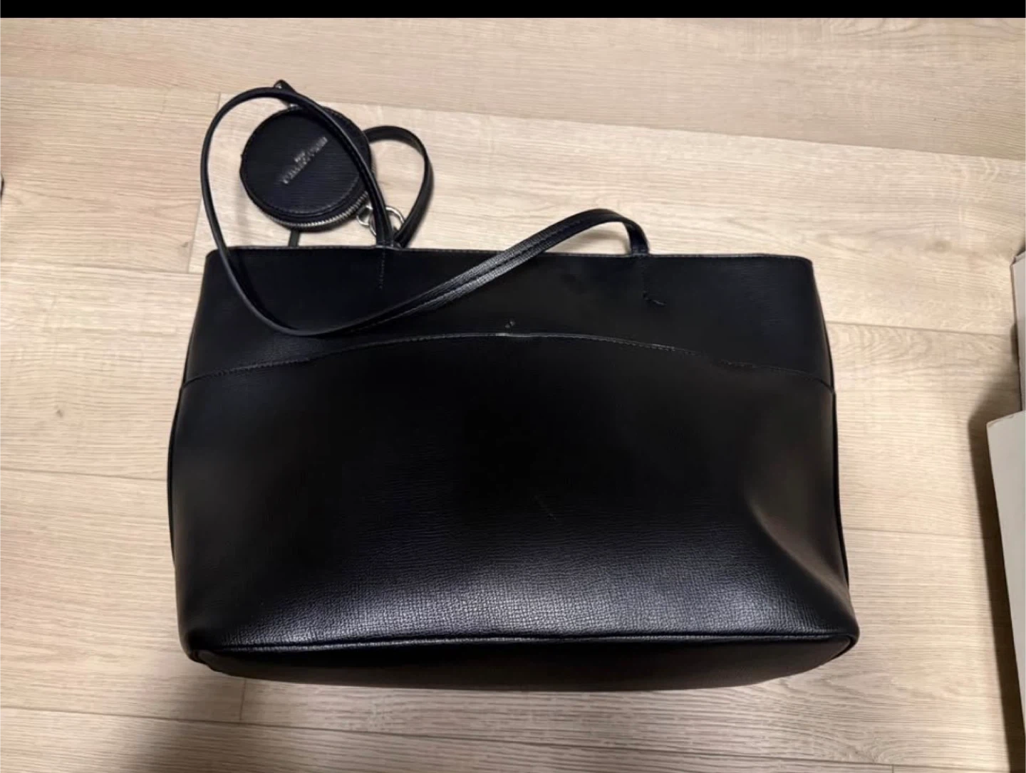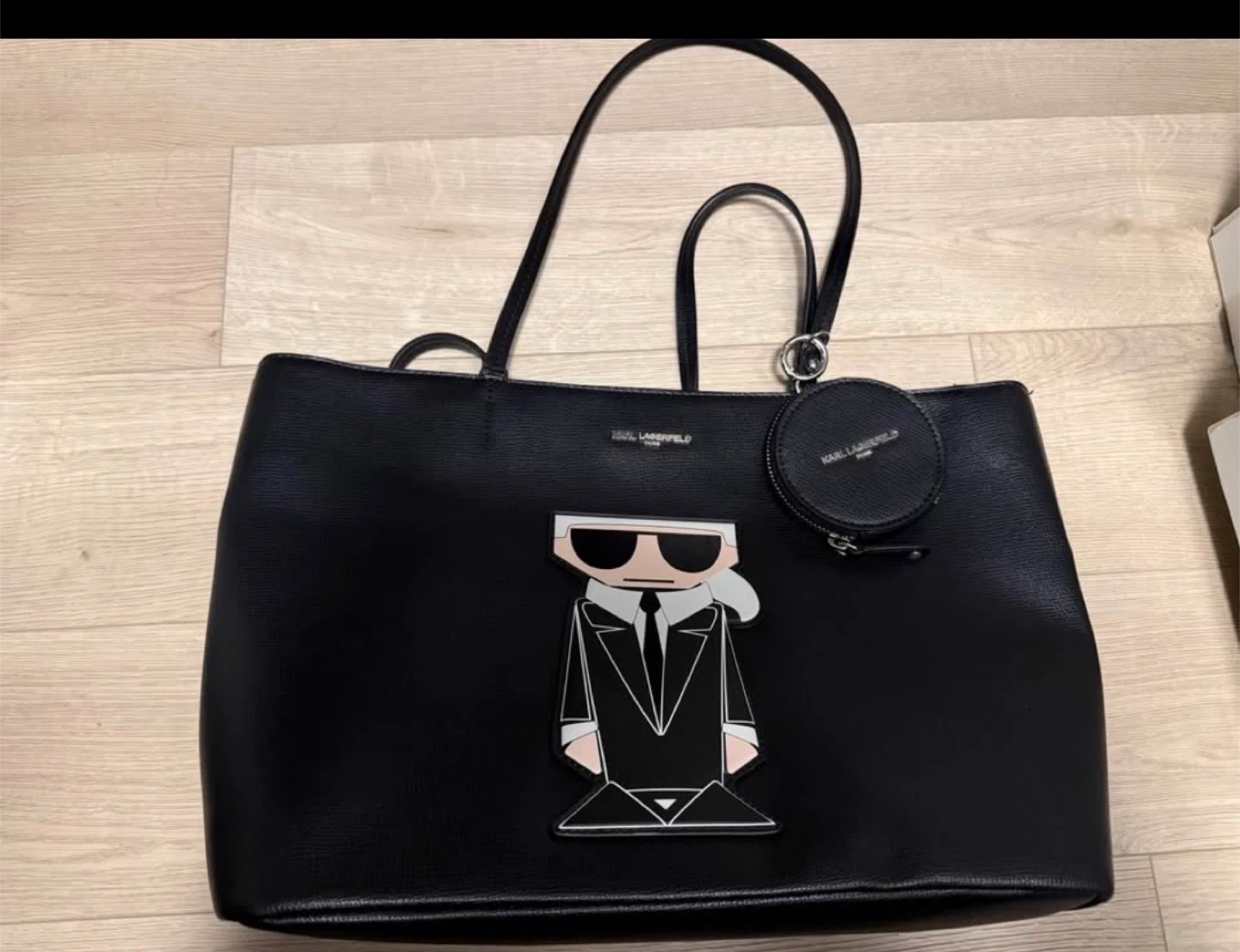 This is a Karl Lagerfeld K/Klassik shopper tote bag in black. It comes with a matching coin pouch. It's made from durable material.