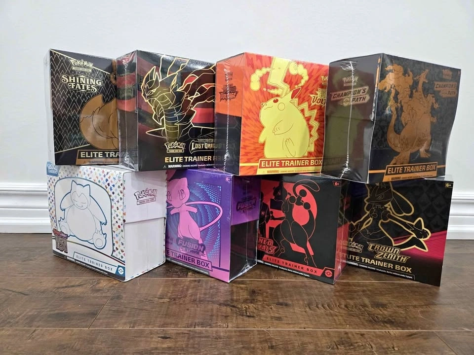 Many sealed Pokemon ETBs. Prices below, will cross out those when sold. Some listed below are not photographed above.