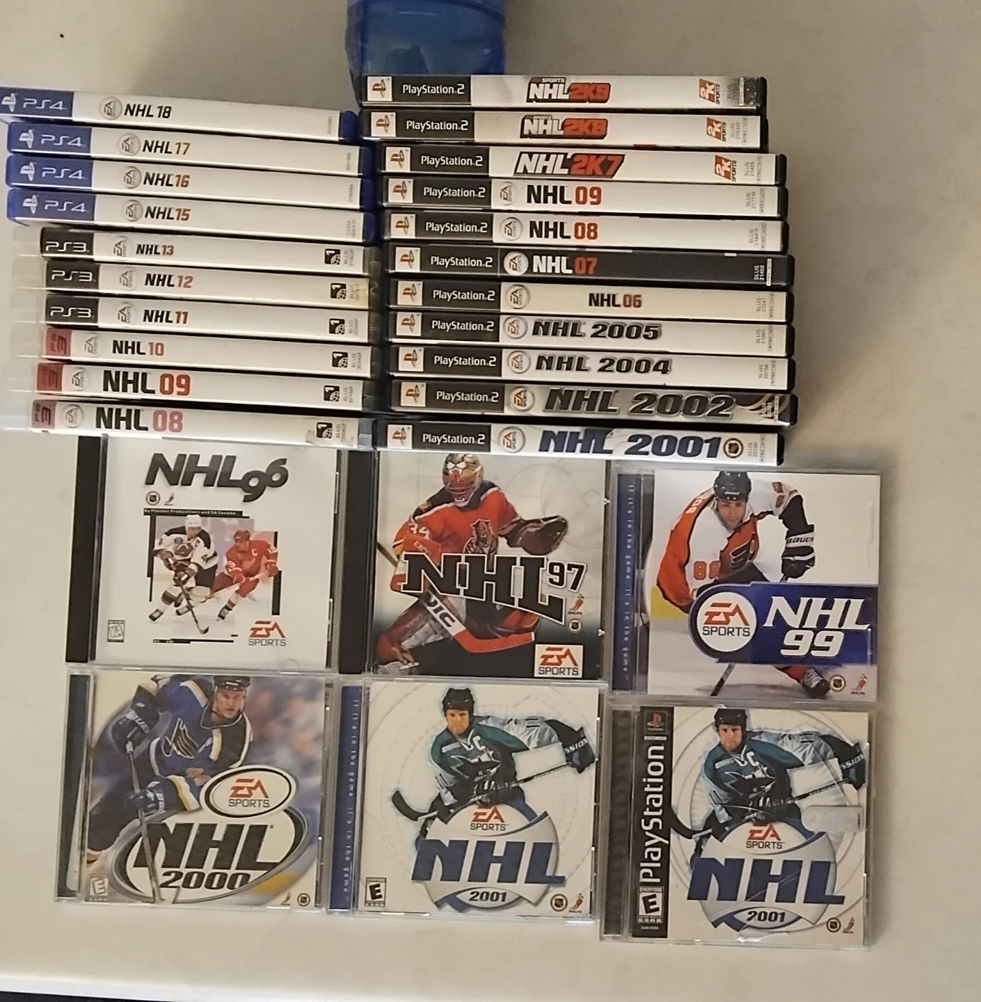 A collection of NHL video games for PlayStation consoles, including titles from NHL 06 to NHL 18. Most are for PlayStation 2, with some PS3 and PS4 titles also included. These games are for hockey fans! All games appear to be in their original cases.