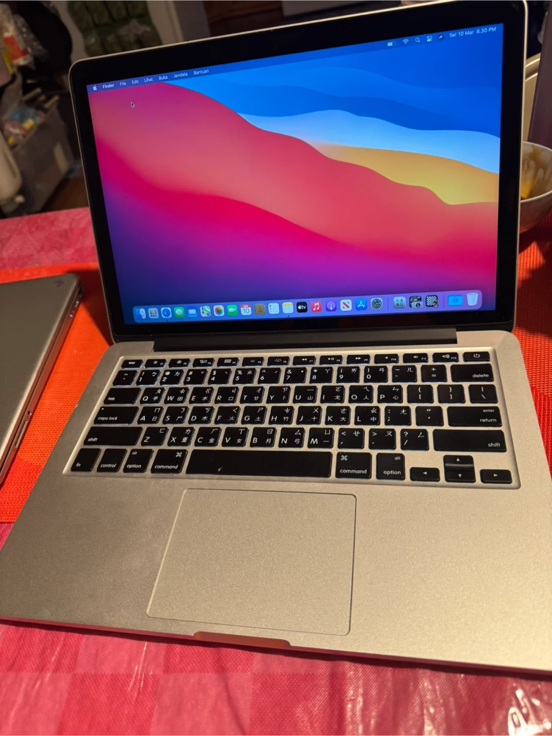 This is a silver Apple MacBook Pro laptop. It features a large trackpad and a standard QWERTY keyboard. It's a reliable machine for everyday tasks. come with charger