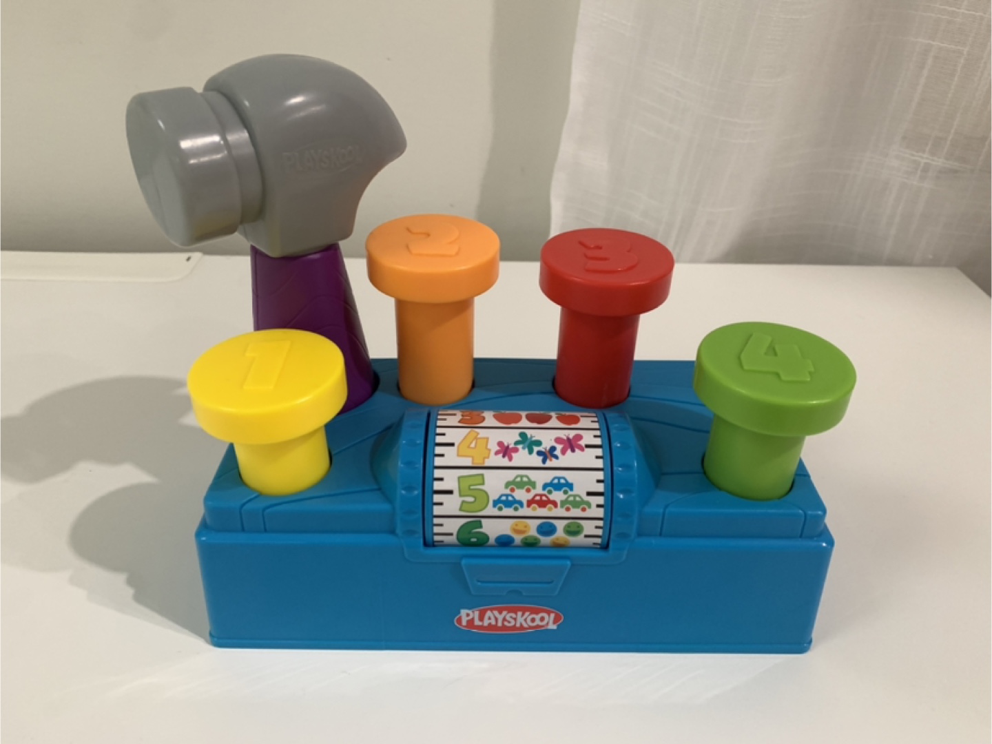 Looking to sell a Playskool Pound 'N Pop hammer toy. It's in like new condition and ready for a new home. This fun toy spins when you tap a nail down and helps with colour and number recognition. A fun hand-eye coordination activity. My kids loved it from ages 1-4 but there is no max age for it’s use.