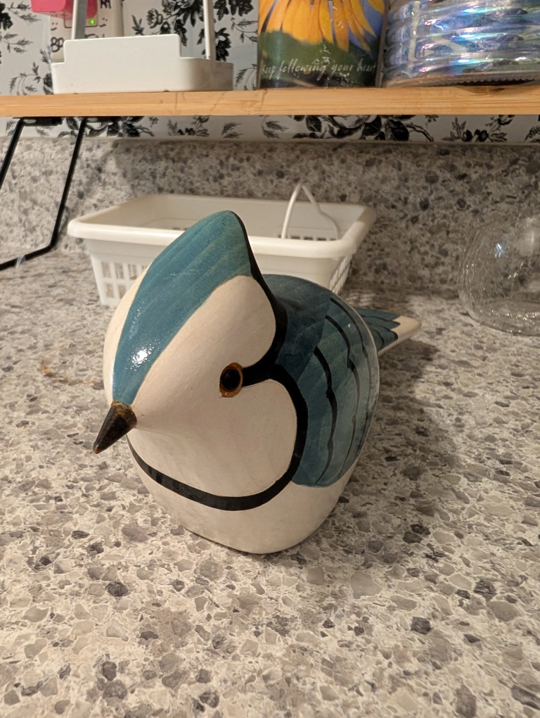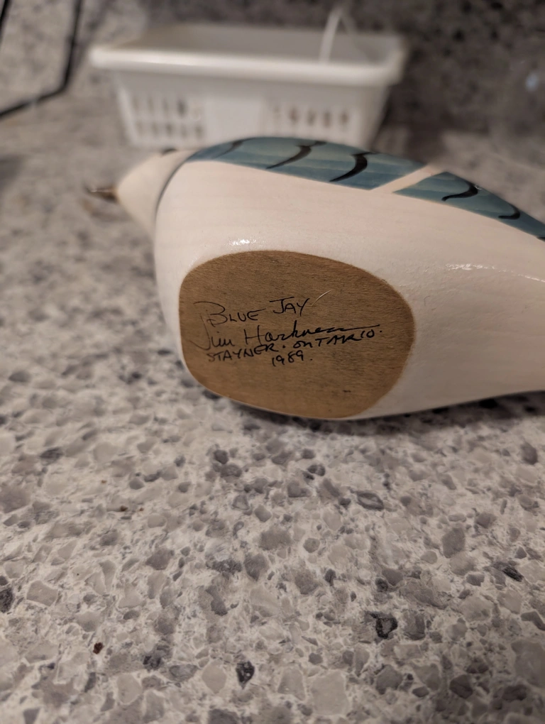 Selling a beautiful Blue Jay figurine by Jim Harkness from Stayner, Ontario, made in 1989! This lovely piece would look great in any home!