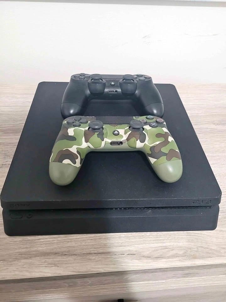 Great PS4 console with two controllers. One is black, the other is a cool camo design. Console works perfectly.