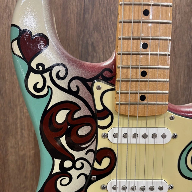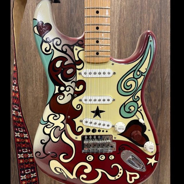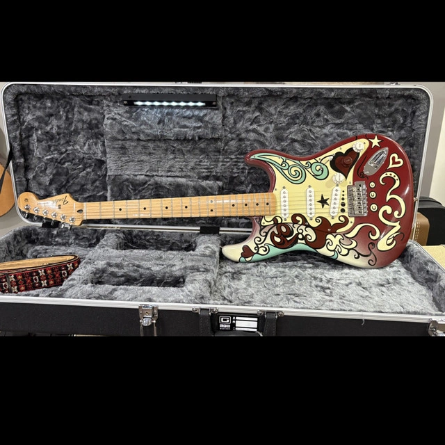 10Up for Sale is this custom painted Hendrix Saville Fender Stratocaster with Genuine Fender Custom Shop '69 Pickups! Painted in the USA by Burger guitars. This guitar looks and sounds amazing! Upgrades include a trio of Fender Custom Shop '69 pickups, hard shell case (LED EDITION - built in lights), Schaller strap locks and an authentic Hendrix strap! Lovingly finished by hand in tribute to the guitar that captured the imagination of musicians all over the world when "The Experience" played London's Saville Theatre before jetting off for their US Tour.