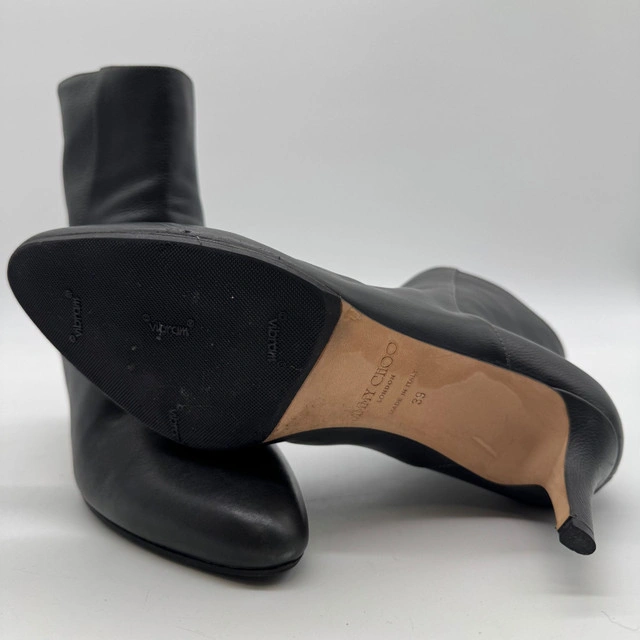 Elevate your style with these authentic Jimmy Choo London black leather ankle boots. Made in Italy with premium craftsmanship, these boots feature a sleek pointed toe, side zipper, and a comfortable stiletto heel. Perfect for both formal and casual outfits. • Brand: Jimmy Choo • Color: Black • Material: Genuine Leather • Size: EU 39 (US Women’s 8.5 – 9) • Heel Height: ~3 in (7.5 cm) • Shaft Height: ~6.5 in (16.5 cm) • Sole: Vibram protective sole added for durability • Condition: Like New, without box Pickup in North York