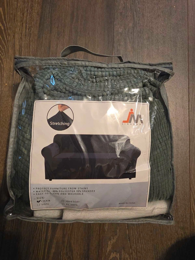31This brand new JinaMart chair cover set is designed to protect your furniture from stains, made from 85% polyester and 15% spandex for a stretchy fit. It’s easy to clean and machine washable, perfect for keeping your chair looking great. It includes one chair cover and two decorative pillowcases. Never used. If the ad is up, the chair cover is available! I have several items like that.