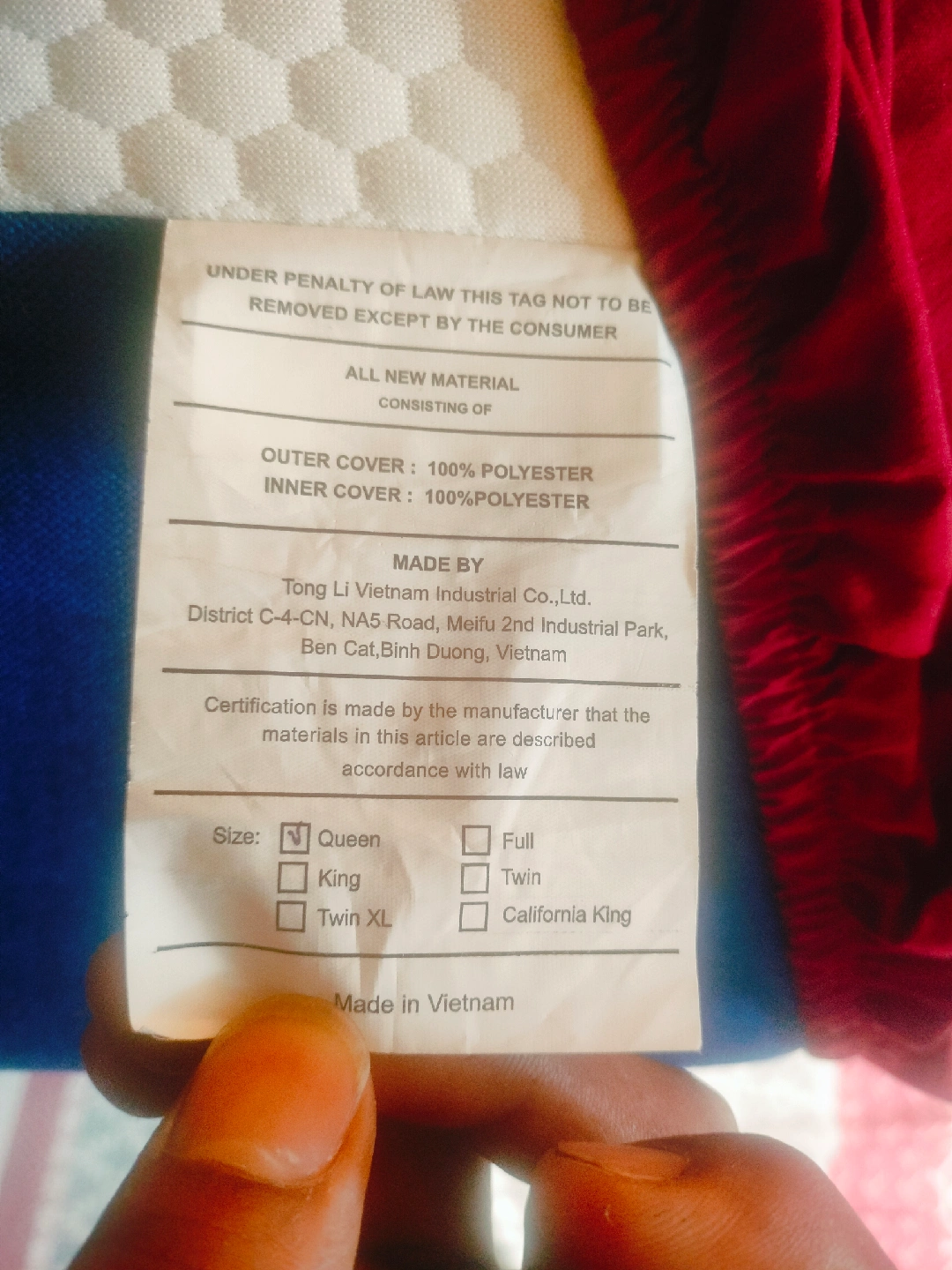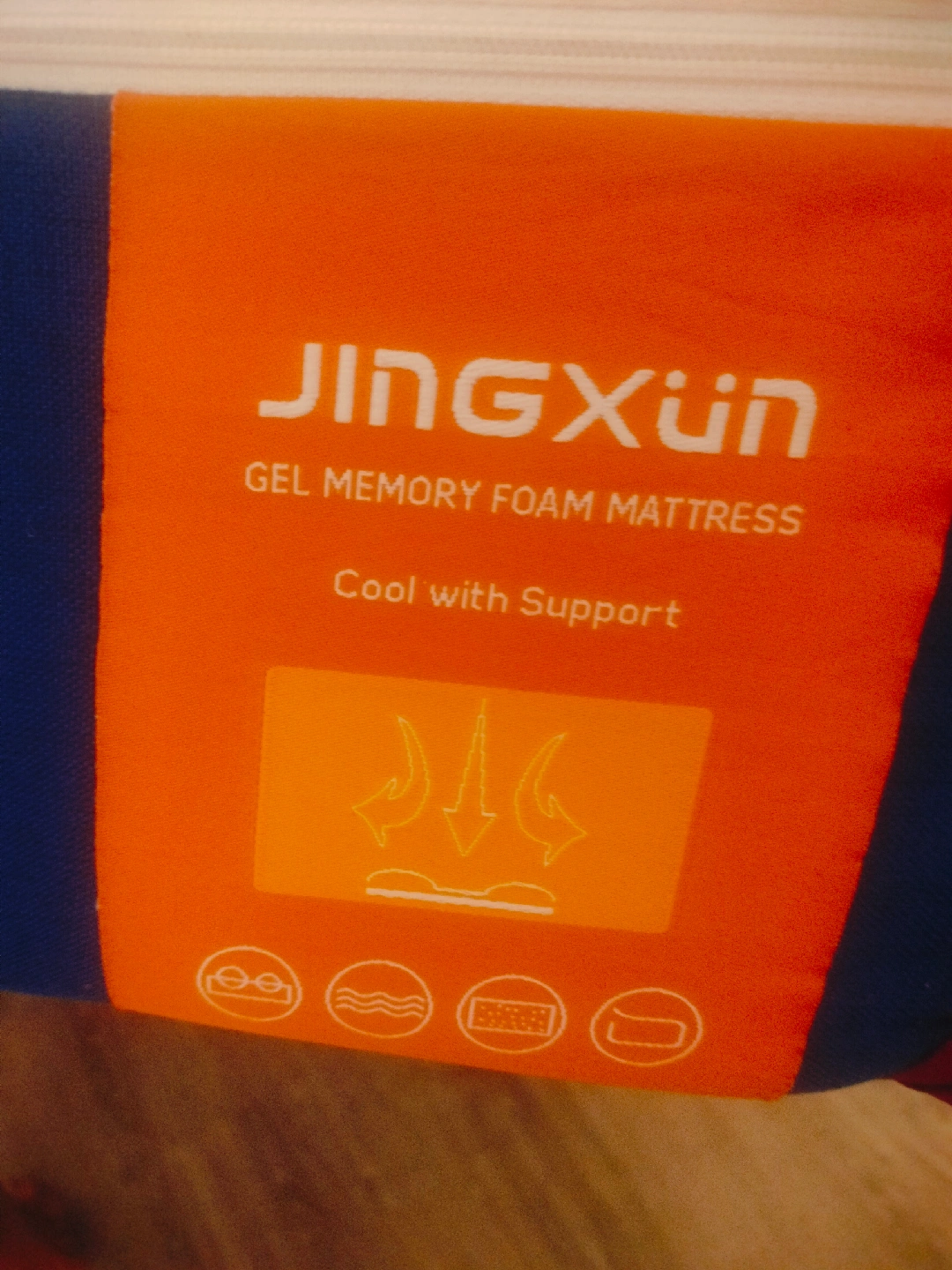 Selling a Jingxun gel memory foam mattress in queen size. It's designed for cool support and is made with 100% polyester for both the outer and inner cover. It's in great condition and ready for a new home!