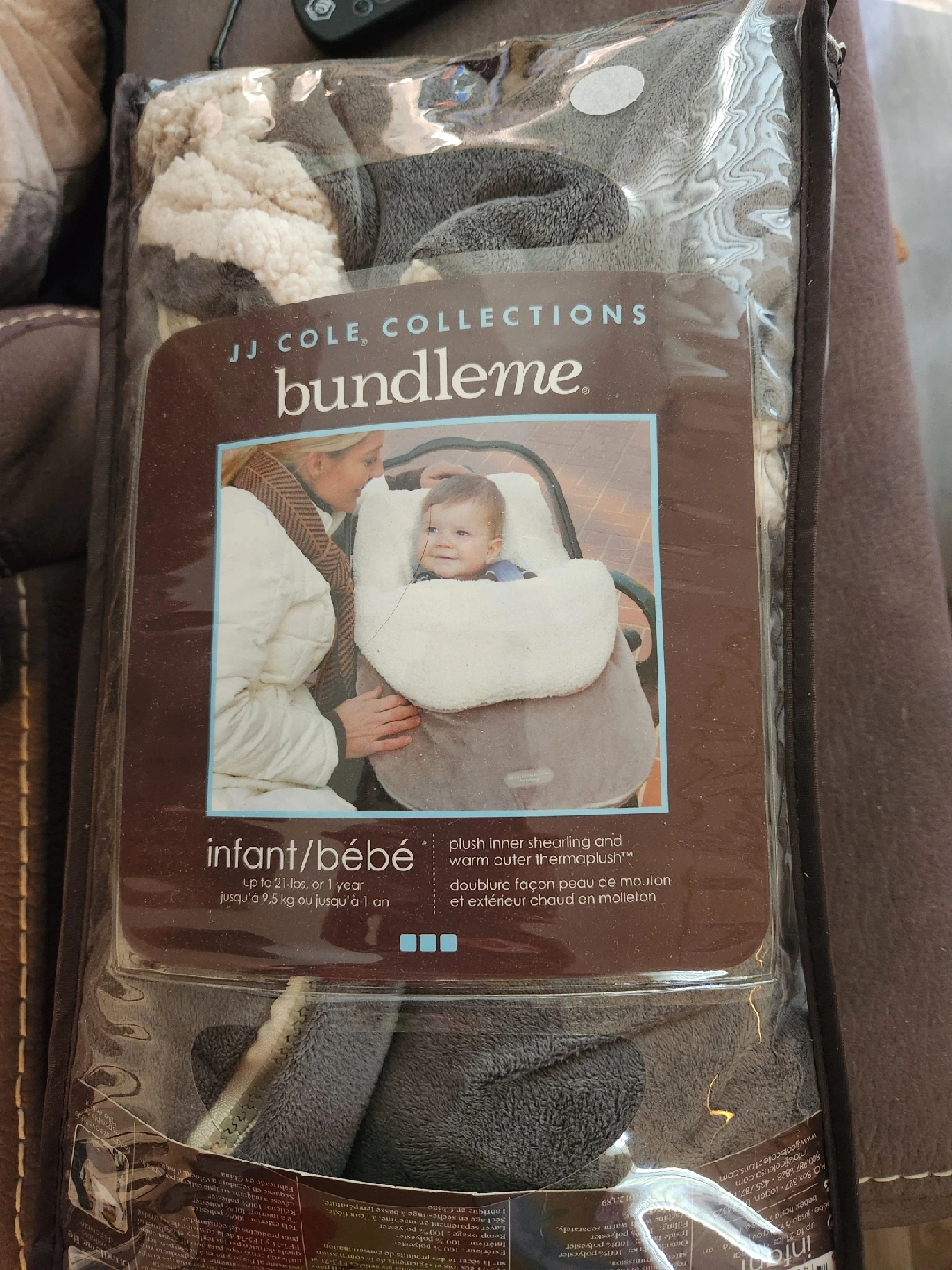 Keep your little one cozy with this JJ Cole Bundleme infant car seat cover! It features a plush inner shearling and a warm outer thermaplush material, perfect for eliminating the need for blankets. It transfers easily from car seat to stroller and is machine washable for easy temperature control. Crash tested for safety!