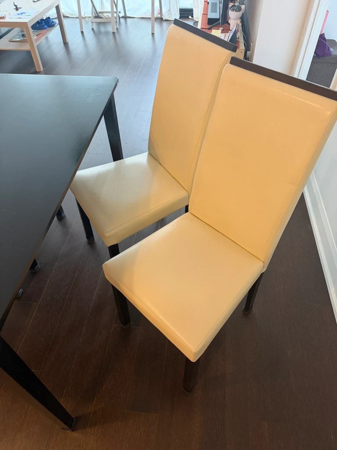 Modern IKEA black dining table with 4 matching chairs, perfect for small to medium dining spaces. The table measures 120 cm (L) × 75 cm (W) × 76 cm (H), offering comfortable seating for family meals or casual gatherings. Its sleek black finish gives a clean, contemporary look that fits well with most home décor styles. Sturdy and well-maintained, with plenty of surface space for dining, work, or entertaining. Ready for pickup and easy to move. Can Deliver at an additional cost and based on distance.