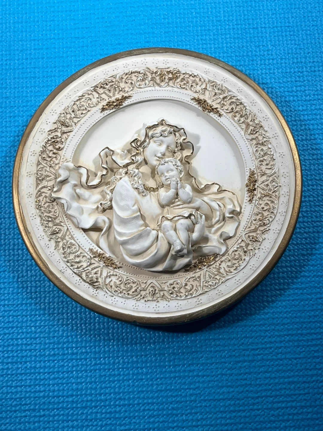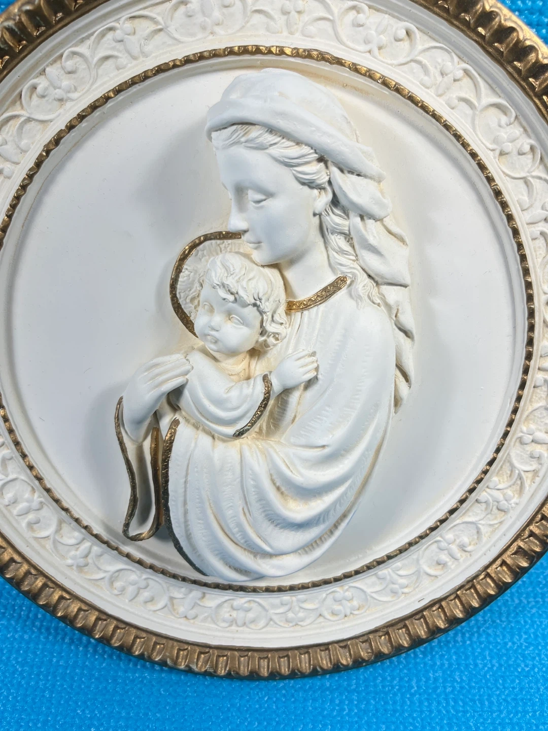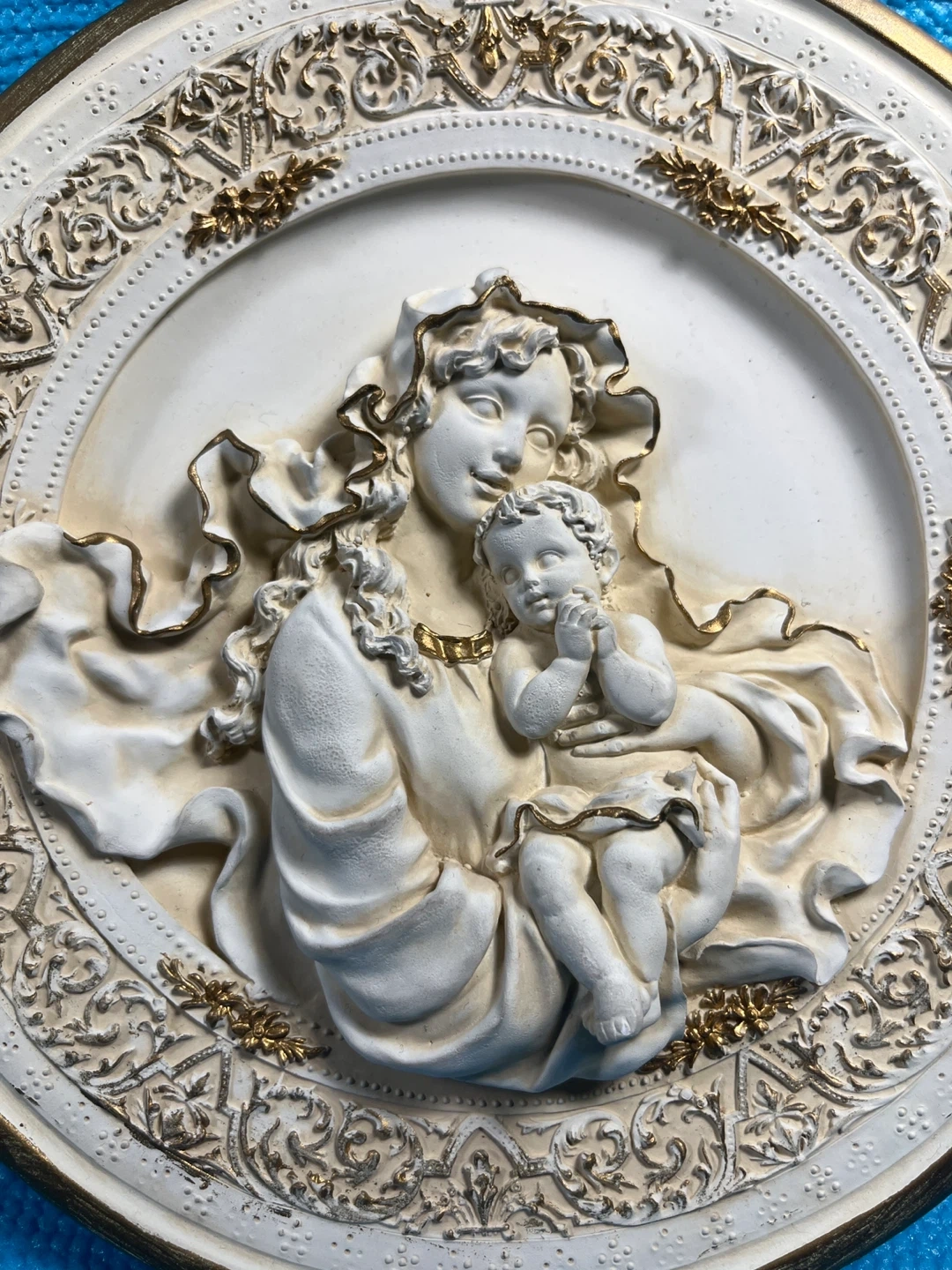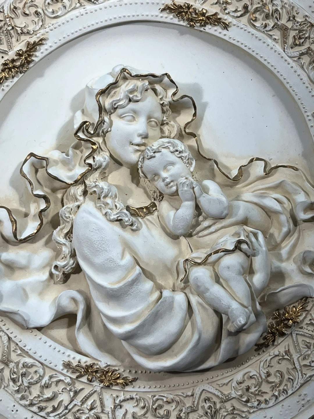 Large Plaque: 10.5" Madonna and Child roundel.