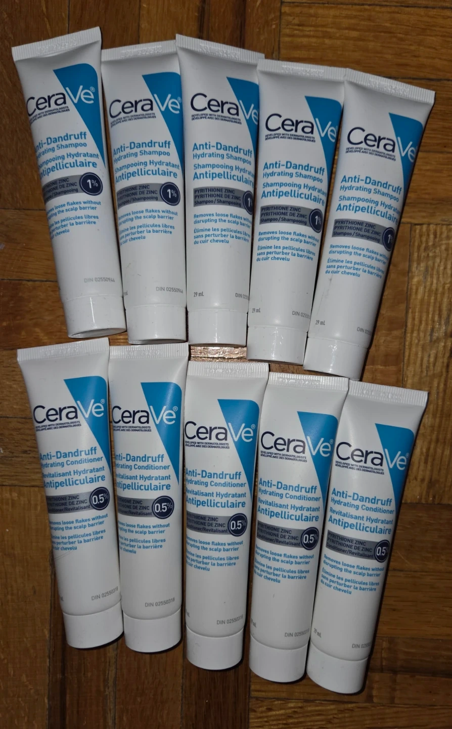 CeraVe Anti-Dandruff Hydrating Shampoo with 1% Pyrithione Zinc. It also includes CeraVe Anti-Dandruff Hydrating Conditioner with 0.5% Pyrithione Zinc. Both formulas help remove loose flakes without disrupting the scalp barrier.