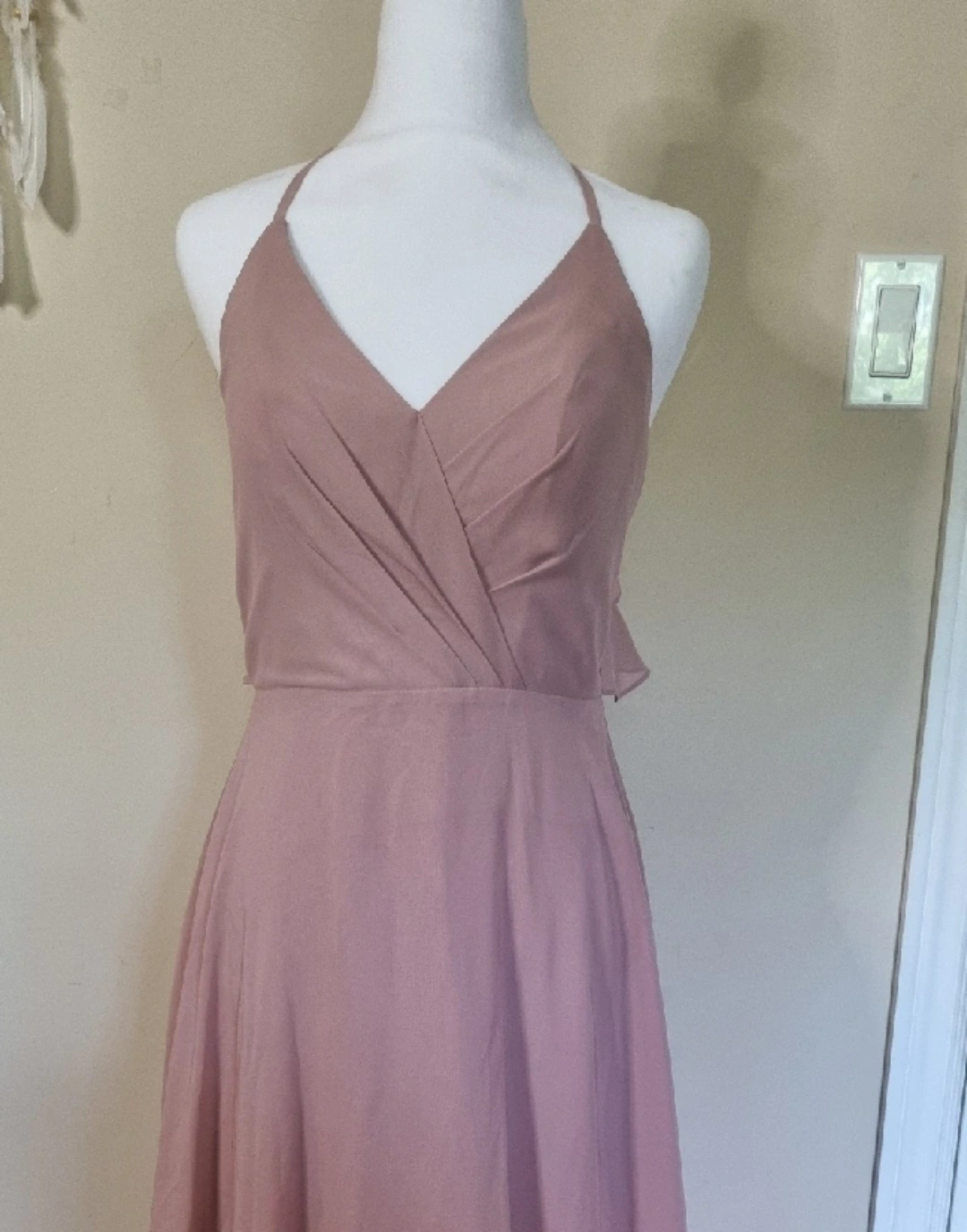 Selling a beautiful pink dress from JJS's House! It's in great condition and perfect for a special occasion. The dress features a halter neckline and a flowing skirt. It's a lovely colour and the material feels nice to wear.