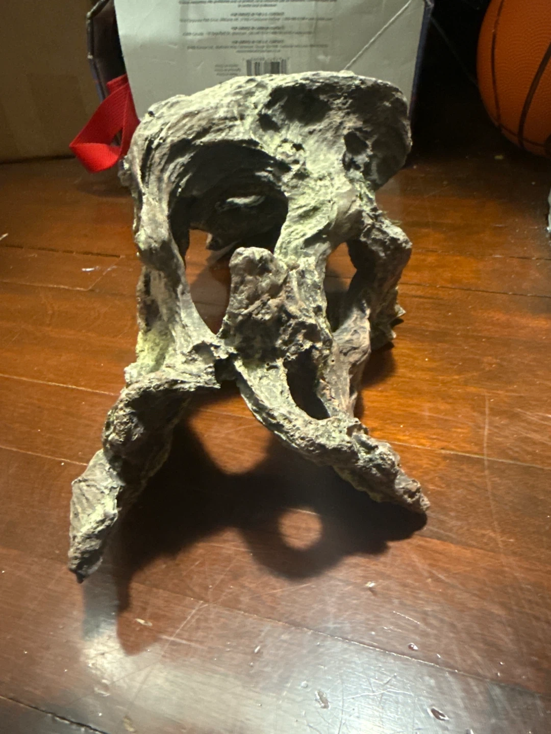 Selling a piece of aquarium driftwood, perfect for adding a natural touch to your fish tank! It's in great shape and ready to be placed in your aquarium. It has a unique shape with holes and textures, providing a great hiding spot for your fish and other aquatic pets