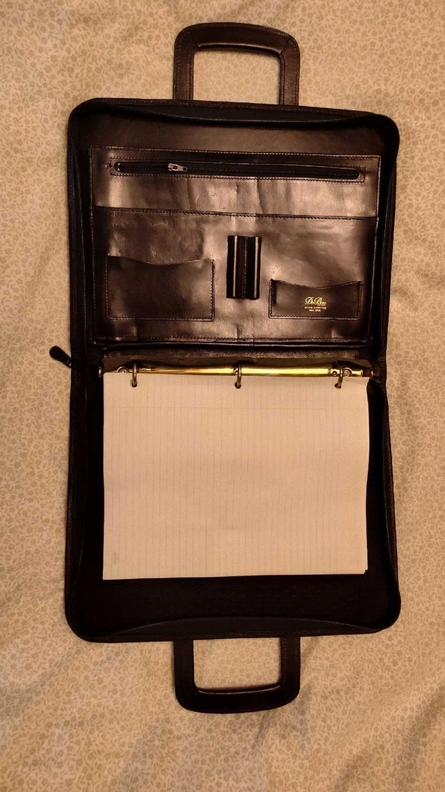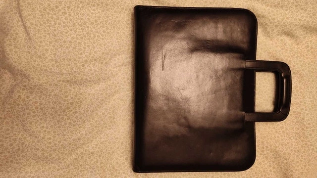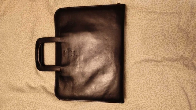 Check out this vintage Nissan 1998 black leather portfolio with a handle and zipper, perfect for professionals or collectors! Being a used item, it has some minor signs of wear, but it’s still in good condition and ready for use. Key Features: - Brand: Nissan - Year: 1998 - Material: Leather - Colour: Black - Closure: Zipper - Additional Features: Interior pockets and pen holder. I think $50 CAD is a fair price considering its vintage status and good condition. This portfolio has been waiting patiently for a new home, ready to carry your important documents in style. If the ad is up, it’s available!