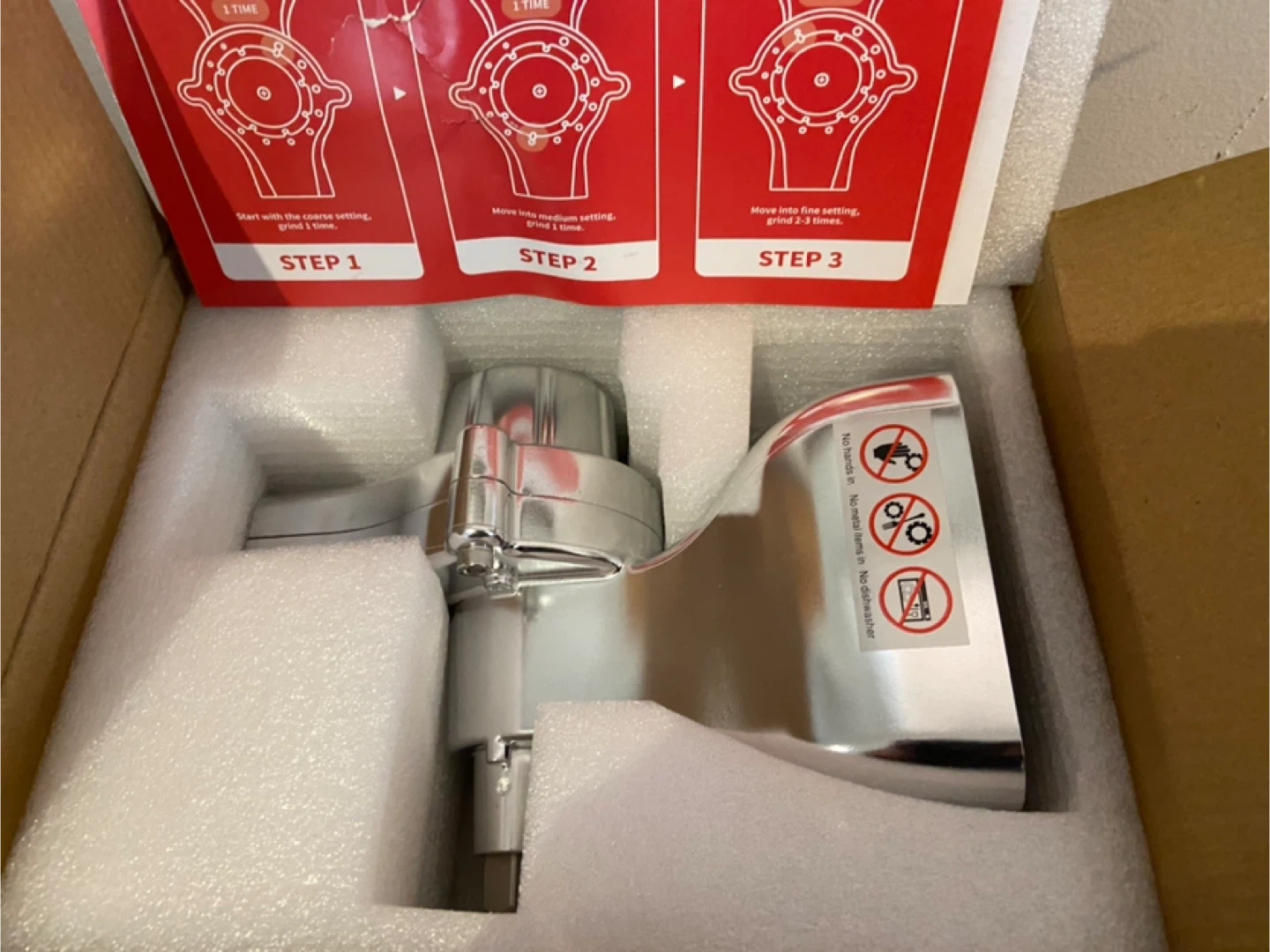 All-Metal Design: Precision metal die-casting ensures a robust and durable construction for maximum efficiency when grinding hard grains.