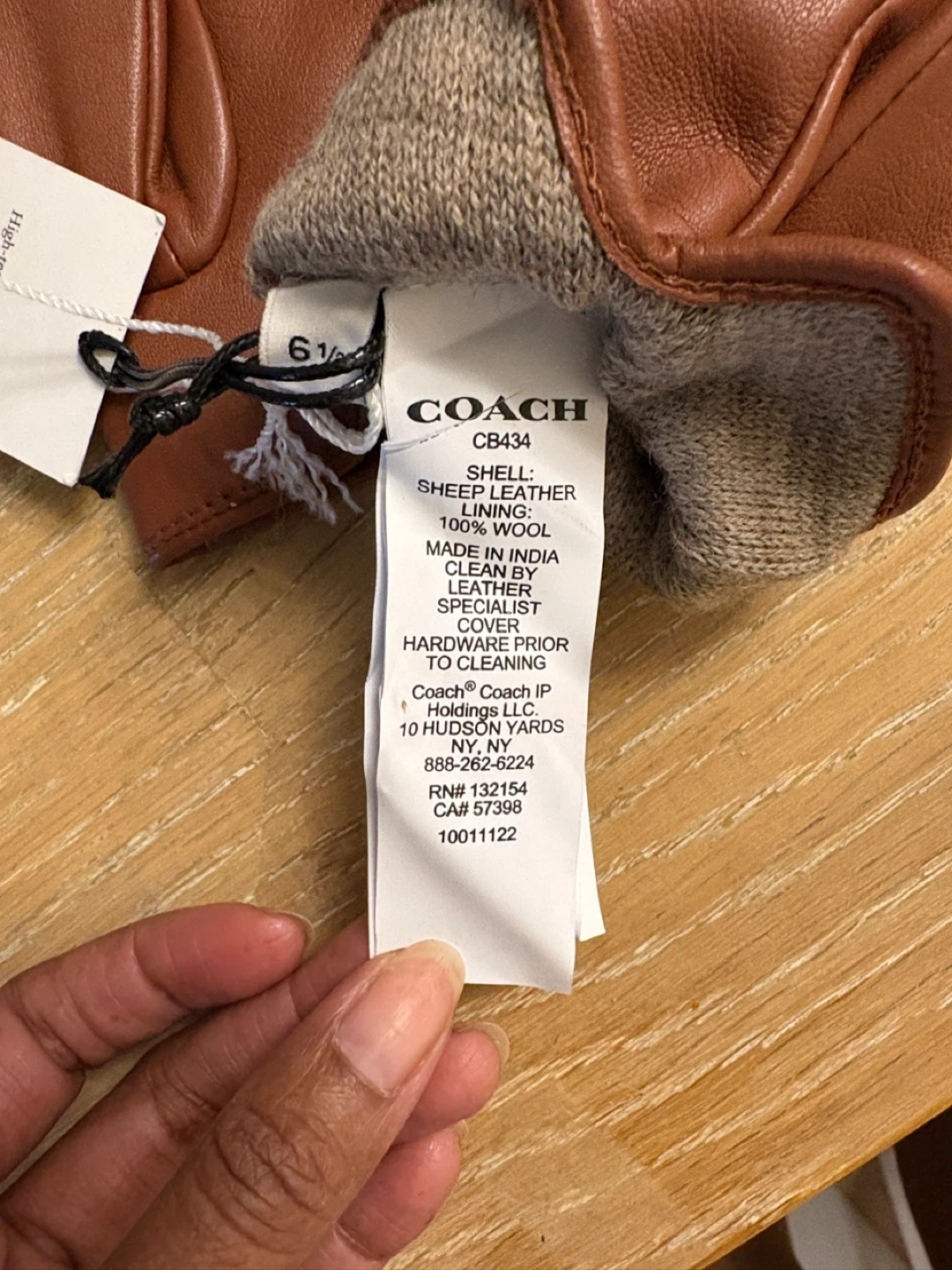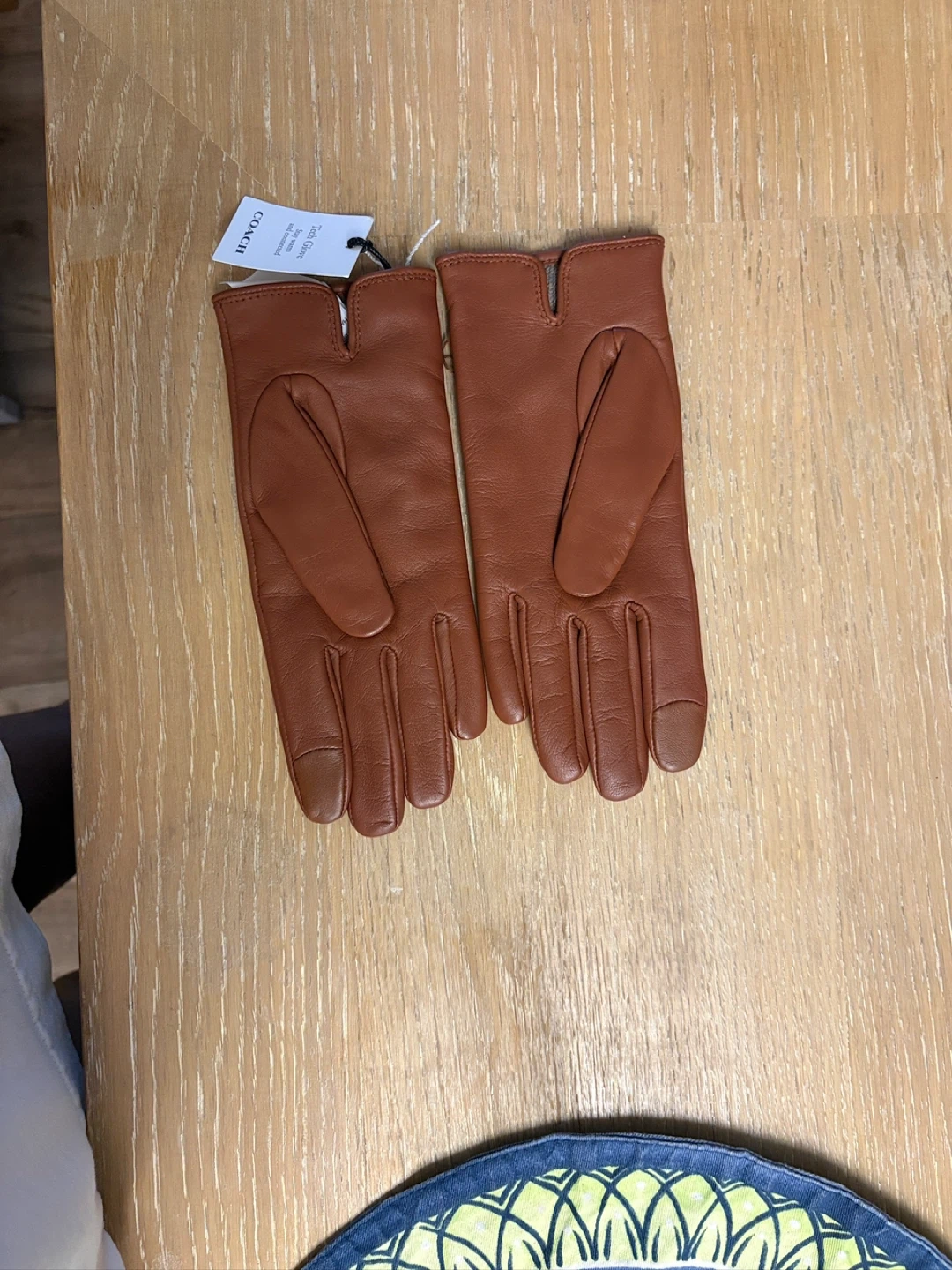 These are a pair of new Coach Tech Gloves. The gloves are made of sheep leather for the shell and 100% wool for the lining. The model number is CB434.