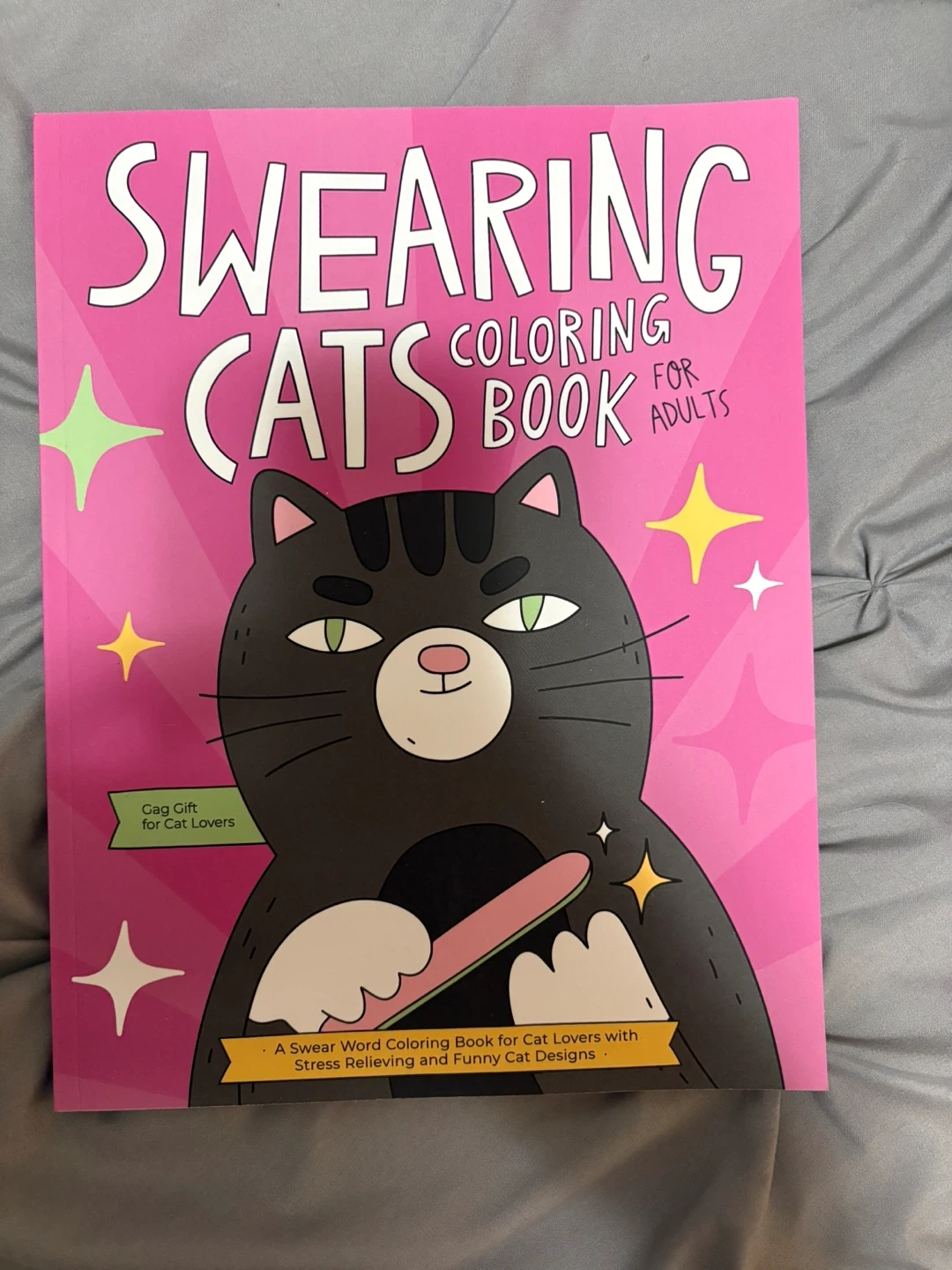 A swear word coloring book for cat lovers with stress-relieving and funny cat designs. It's suitable for adults who enjoy a bit of humour. This book provides a fun way to de-stress and get creative!