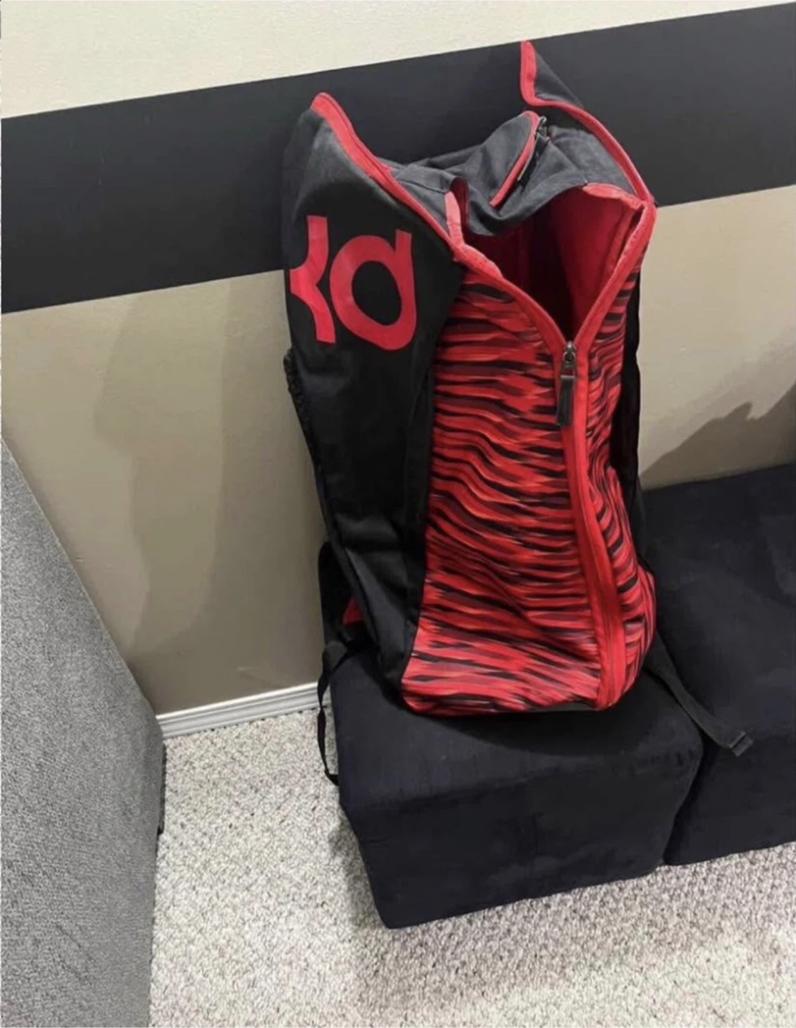 Selling a Nike KD backpack in black and red. It's in great shape and ready for a new owner. Perfect for school, sports, or everyday use