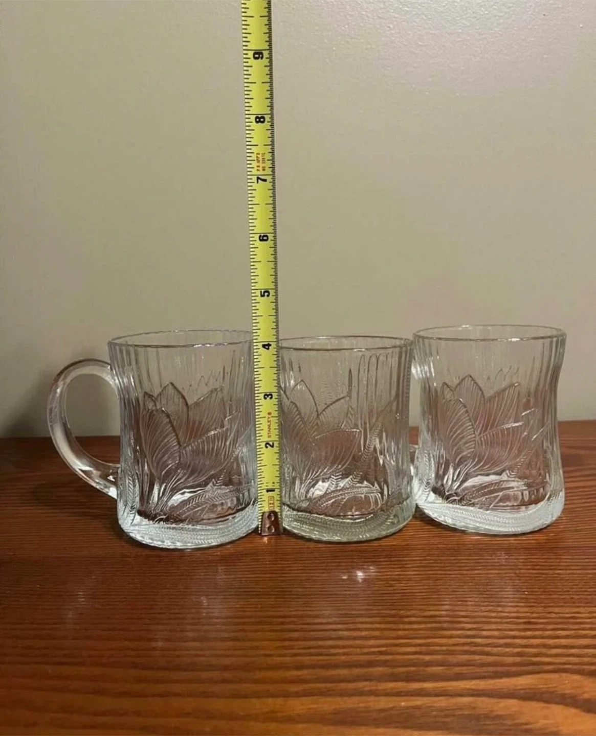 $15-3 Vintage Arcoroc Crocus clear glass coffee mugs.