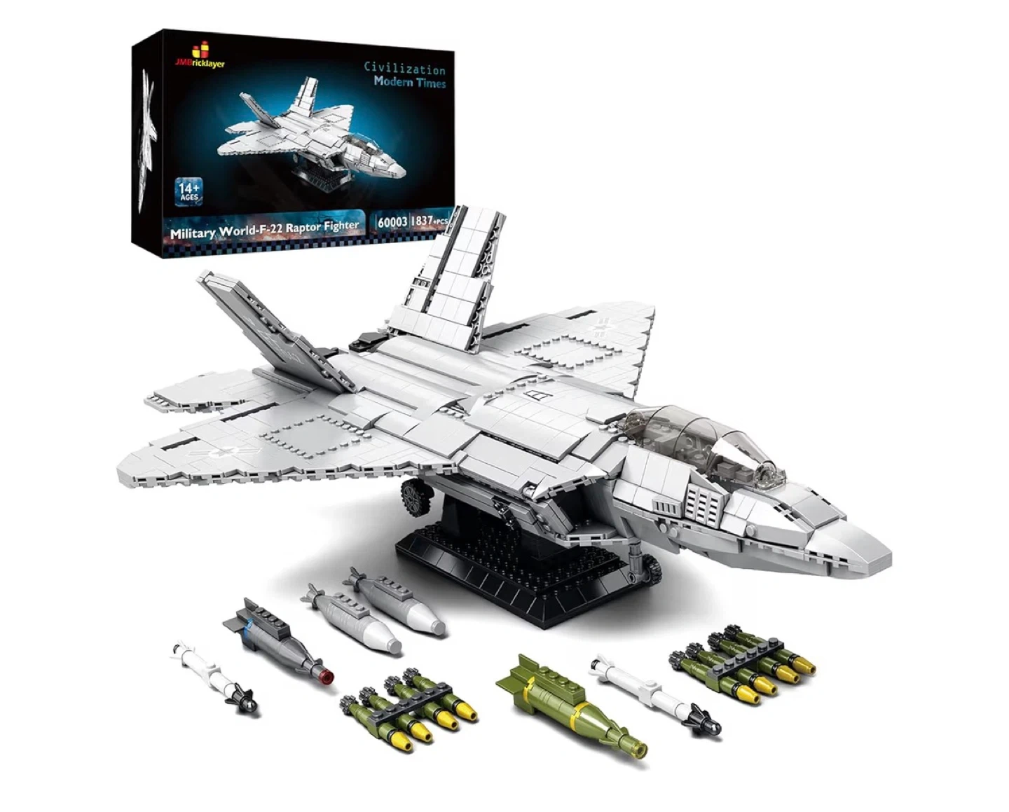BRAND NEW SEALED!!! Get ready for some serious building fun with this JMBricklayer Military World F-22 Raptor Fighter set! It's got 1837 pieces, perfect for ages 14 and up. This set includes everything you need to build your own modern times civilization military aircraft!