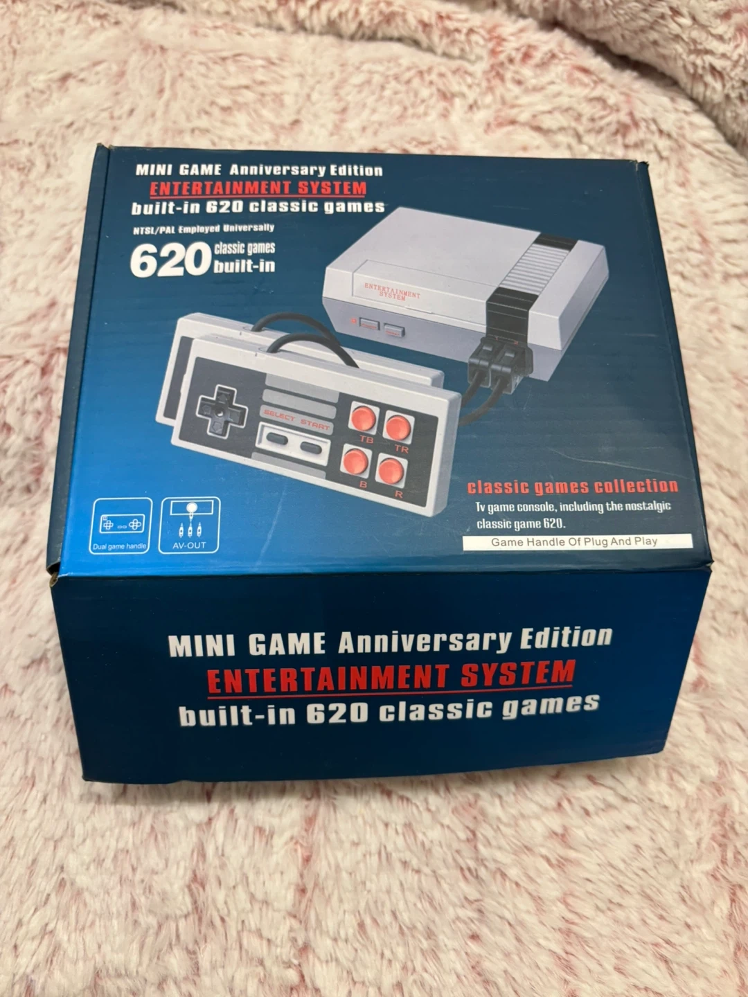 This mini entertainment system comes with 620 classic games built-in. It includes dual game handles, AV-out capabilities. The classic games collection, is a game handle plug-and-play device.