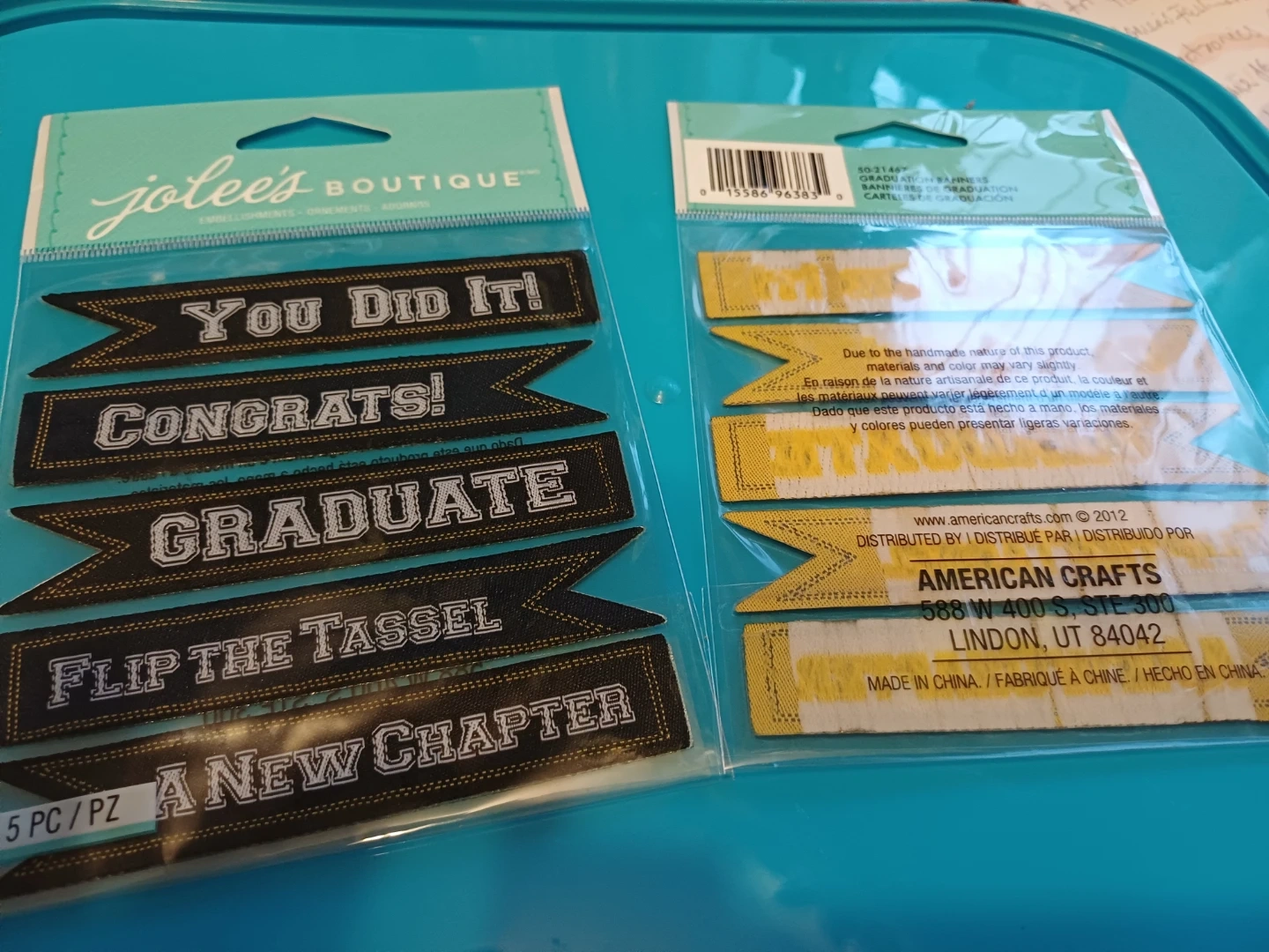 Selling a set of Jolee's Boutique graduation-themed banner stickers! Perfect for adding a celebratory touch to graduation cards, scrapbooks, or party decorations. Each banner has a unique message like 'You Did It!', 'Congrats!', 'Graduate', 'Flip the Tassel', and 'A New Chapter'. There are 5 pieces in total!