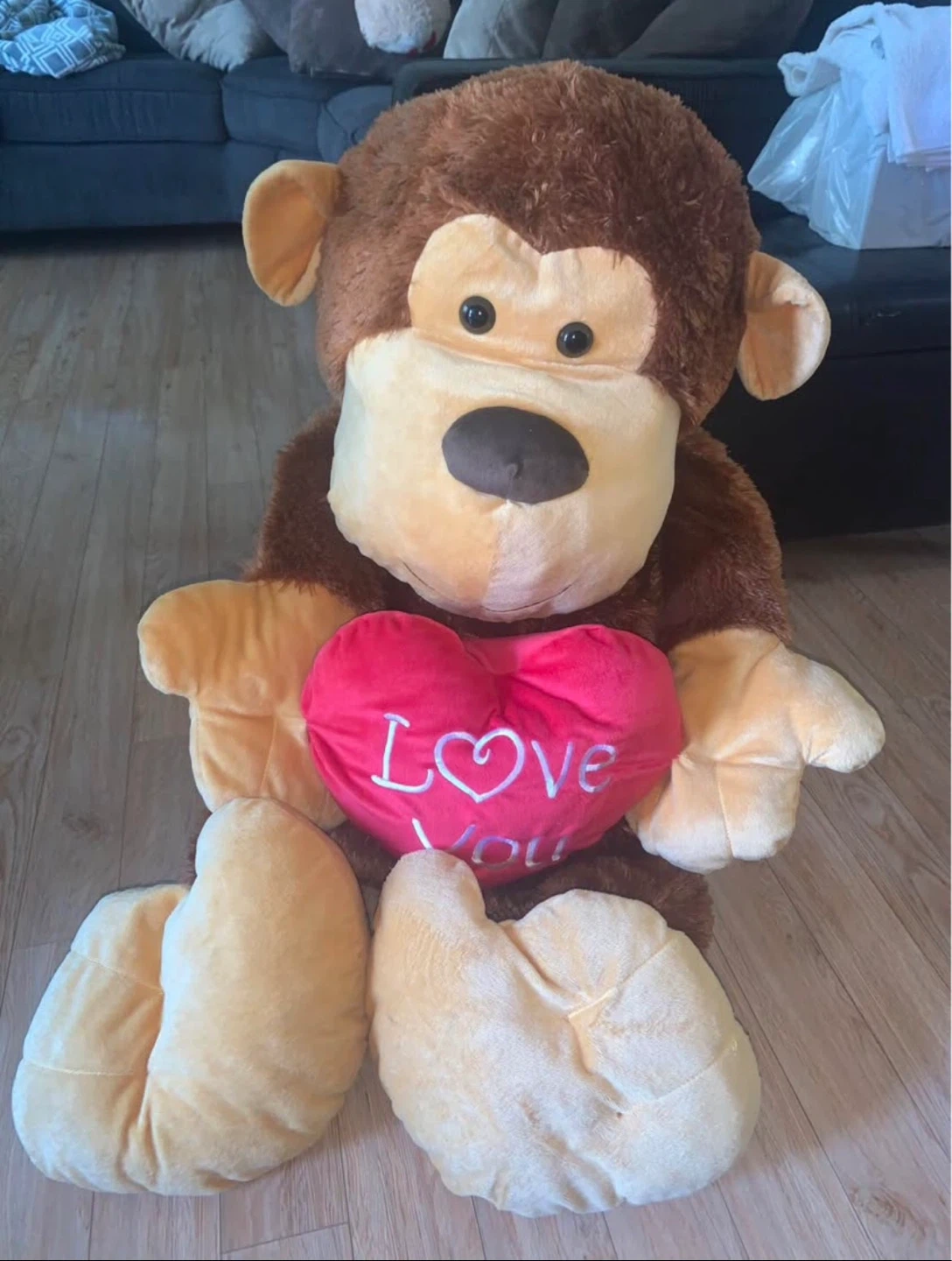 5ft Plush Monkey with "I Love You" Heart Pillow
