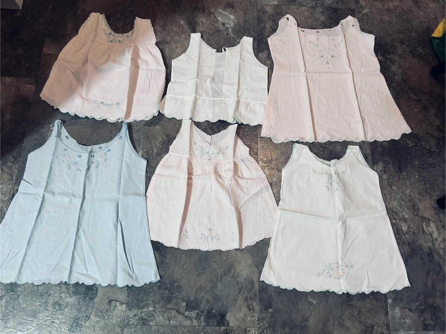 6 antique Madeira handmade Baby Dresses or tops