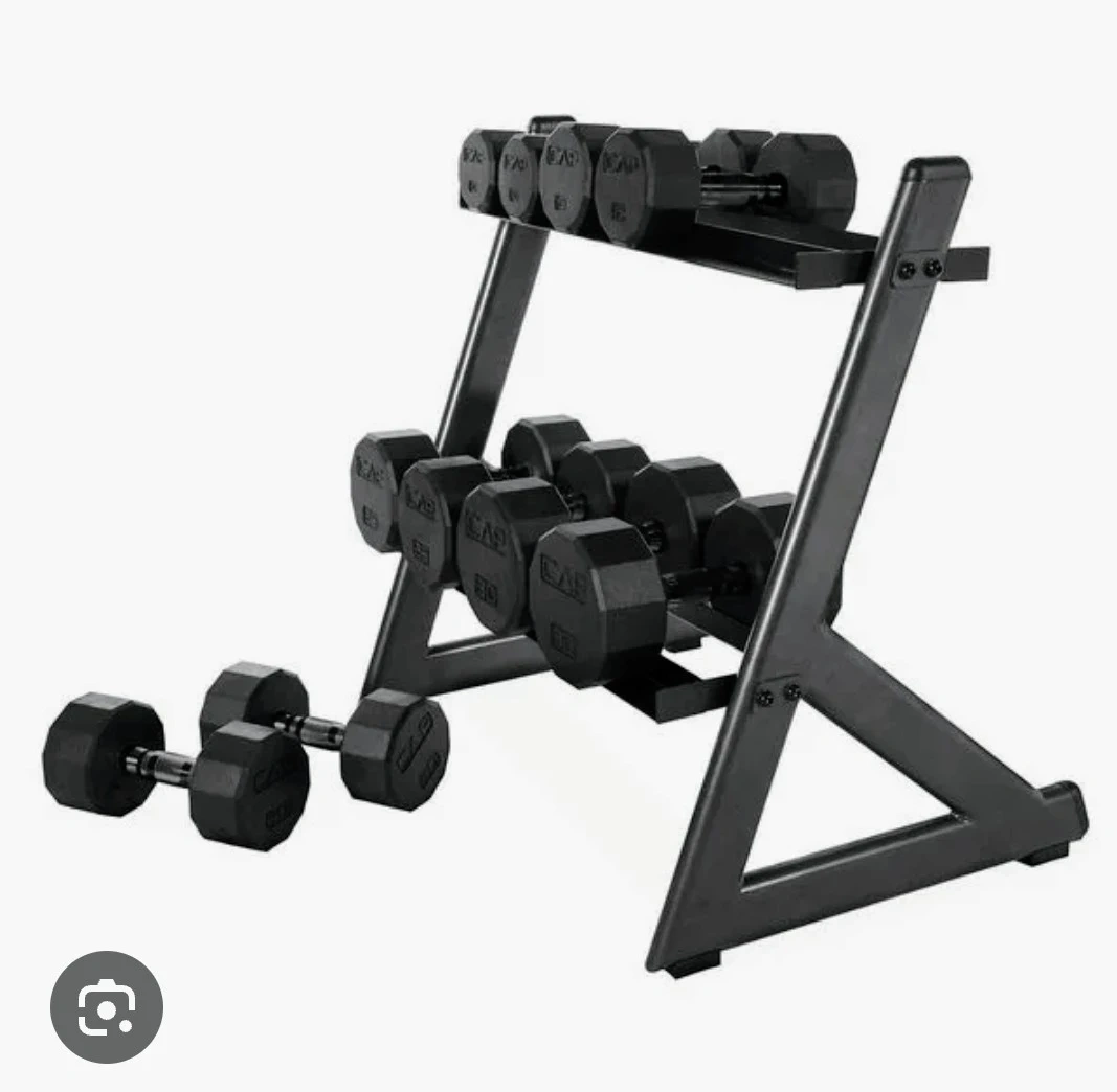 Selling a CAP Barbell Hex Dumbbell Set with Rack. Great for home workouts and strength training!