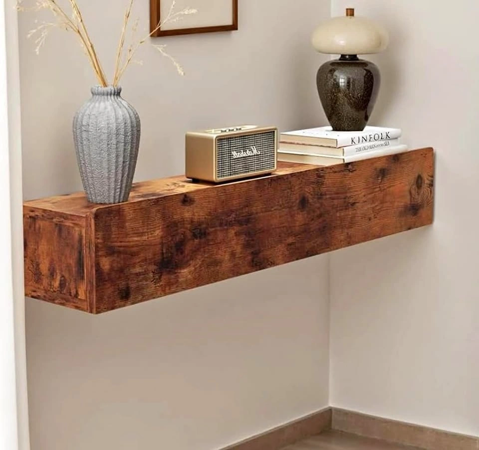 Solid Wood Floating Console Table - Rustic Brown