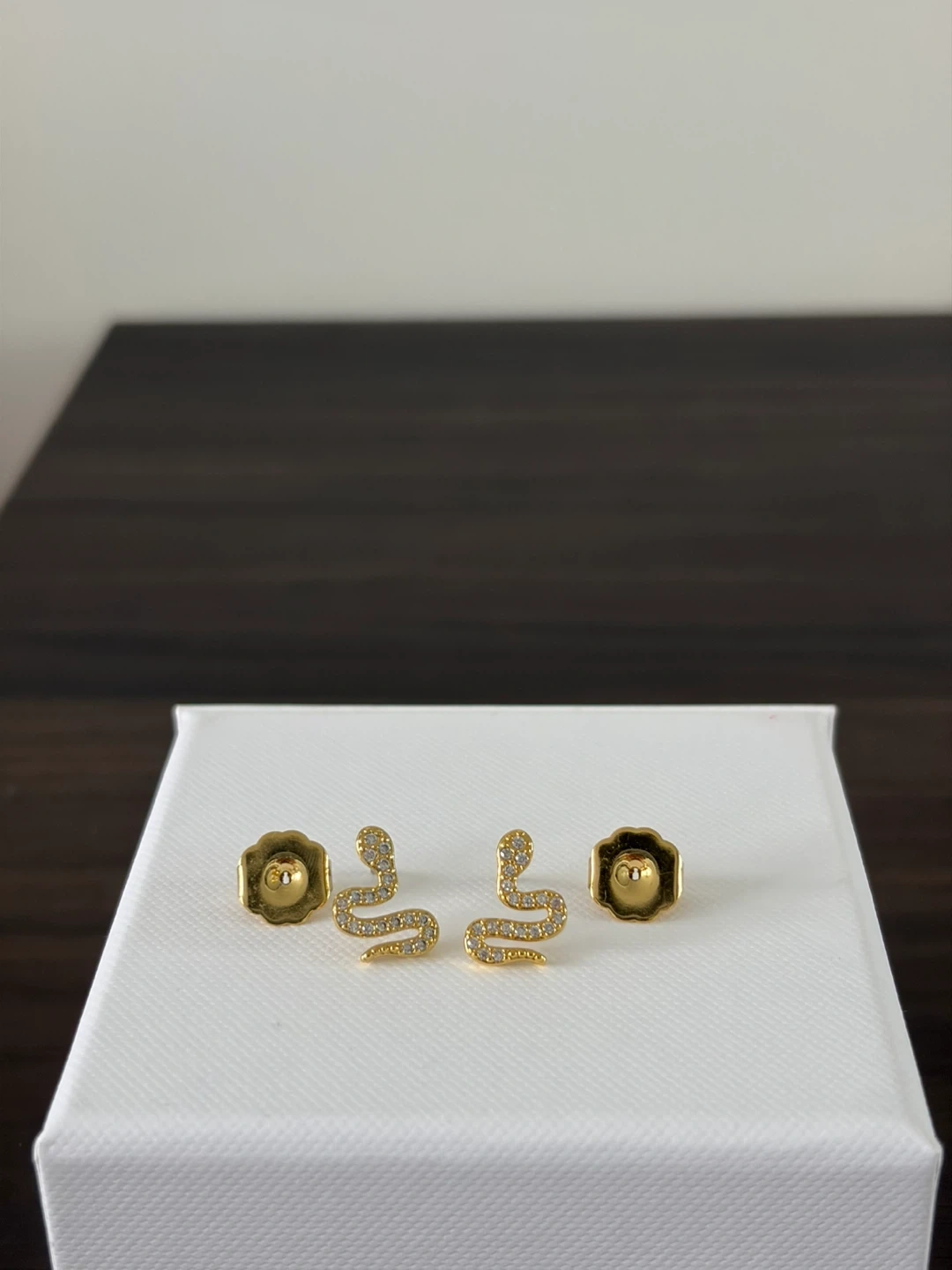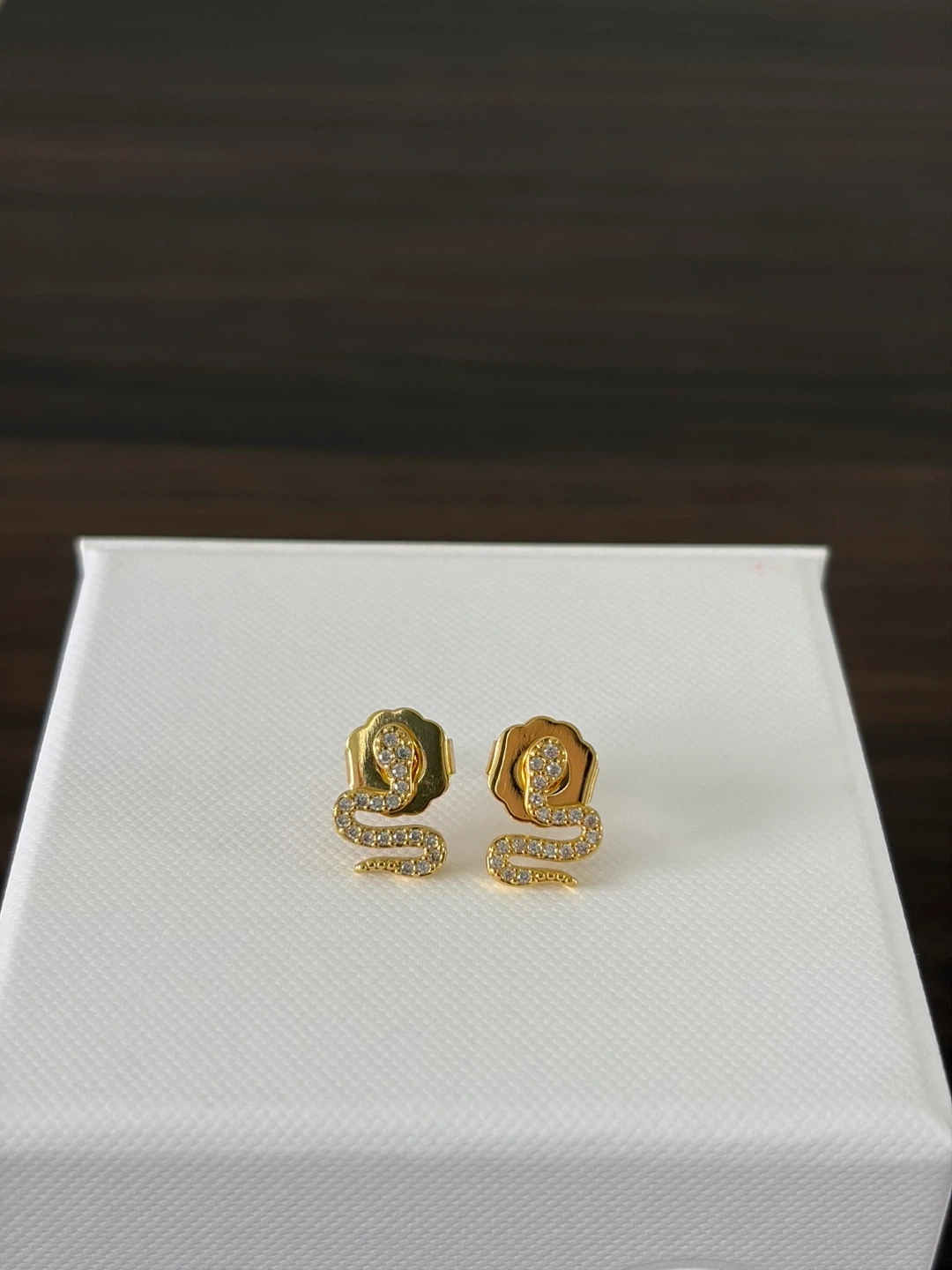 Gold Tone Snake Stud Earrings with Crystals
