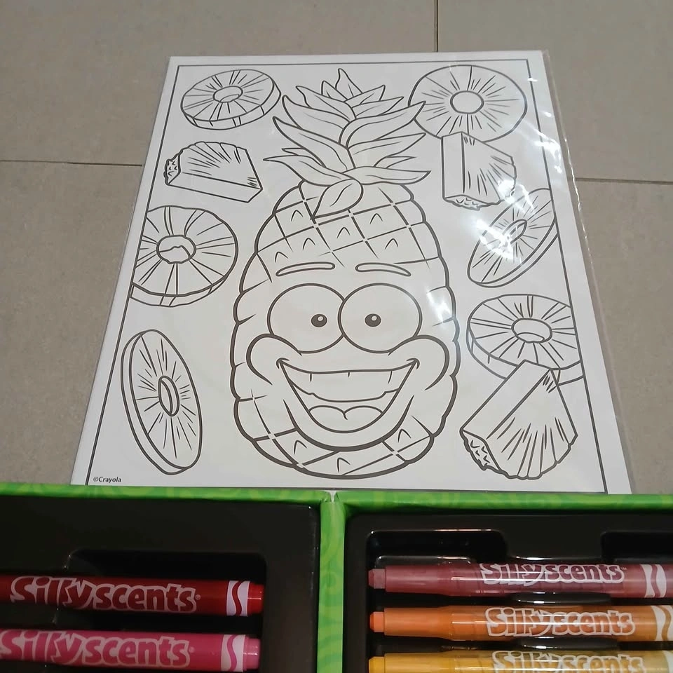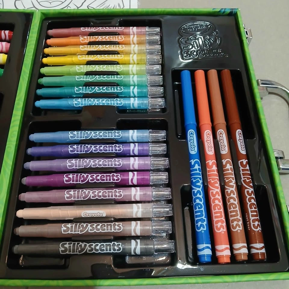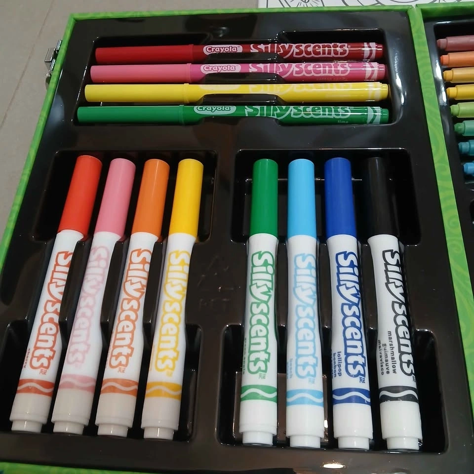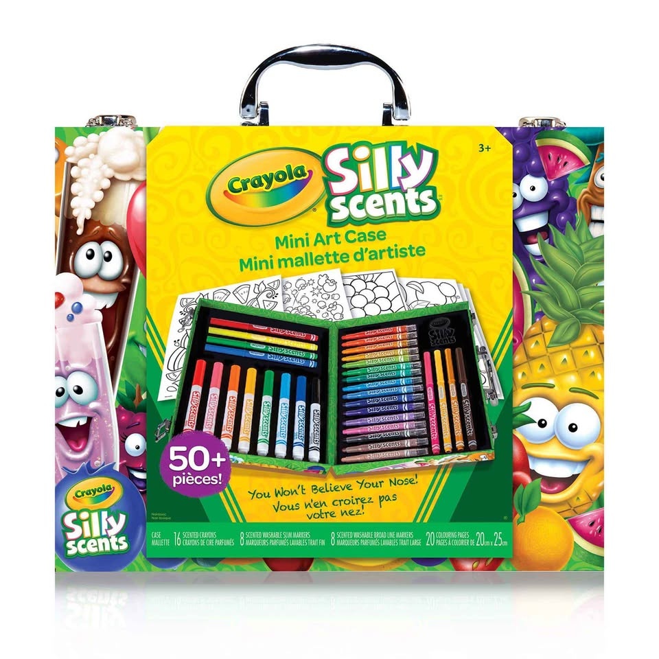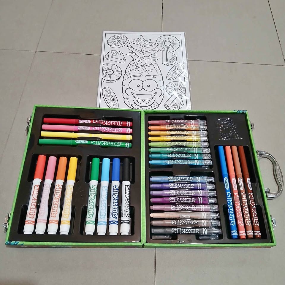 It comes with a variety of markers and crayons, each with its own unique scent. The set includes a colouring sheets to get you started. Great for kids and adults who love to get creative!!