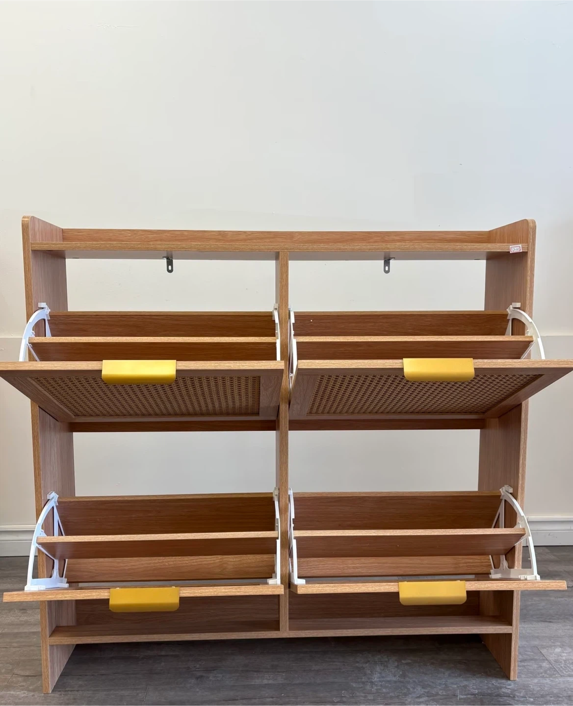 Wooden Shoe Cabinet with Cane Doors