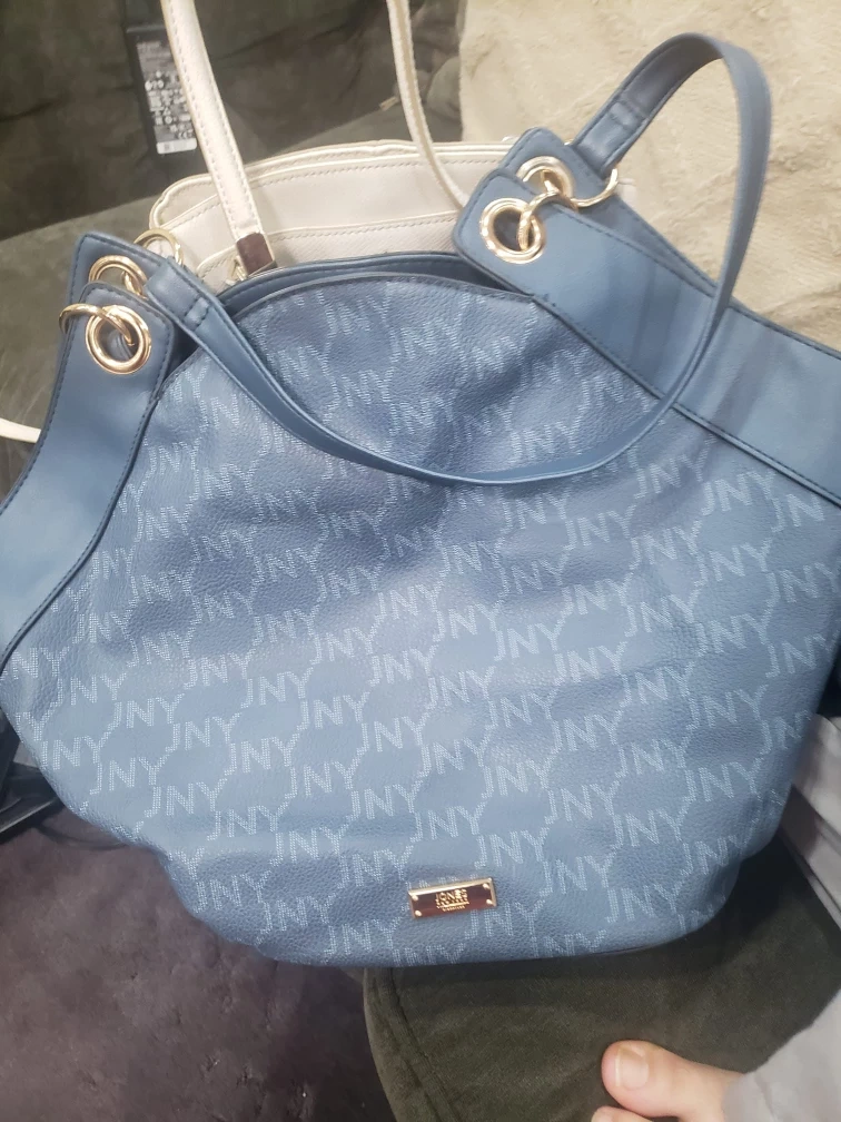 15A lovely blue handbag with a JNY pattern all over! It's in great condition and ready for a new home. Perfect for everyday use or a night out