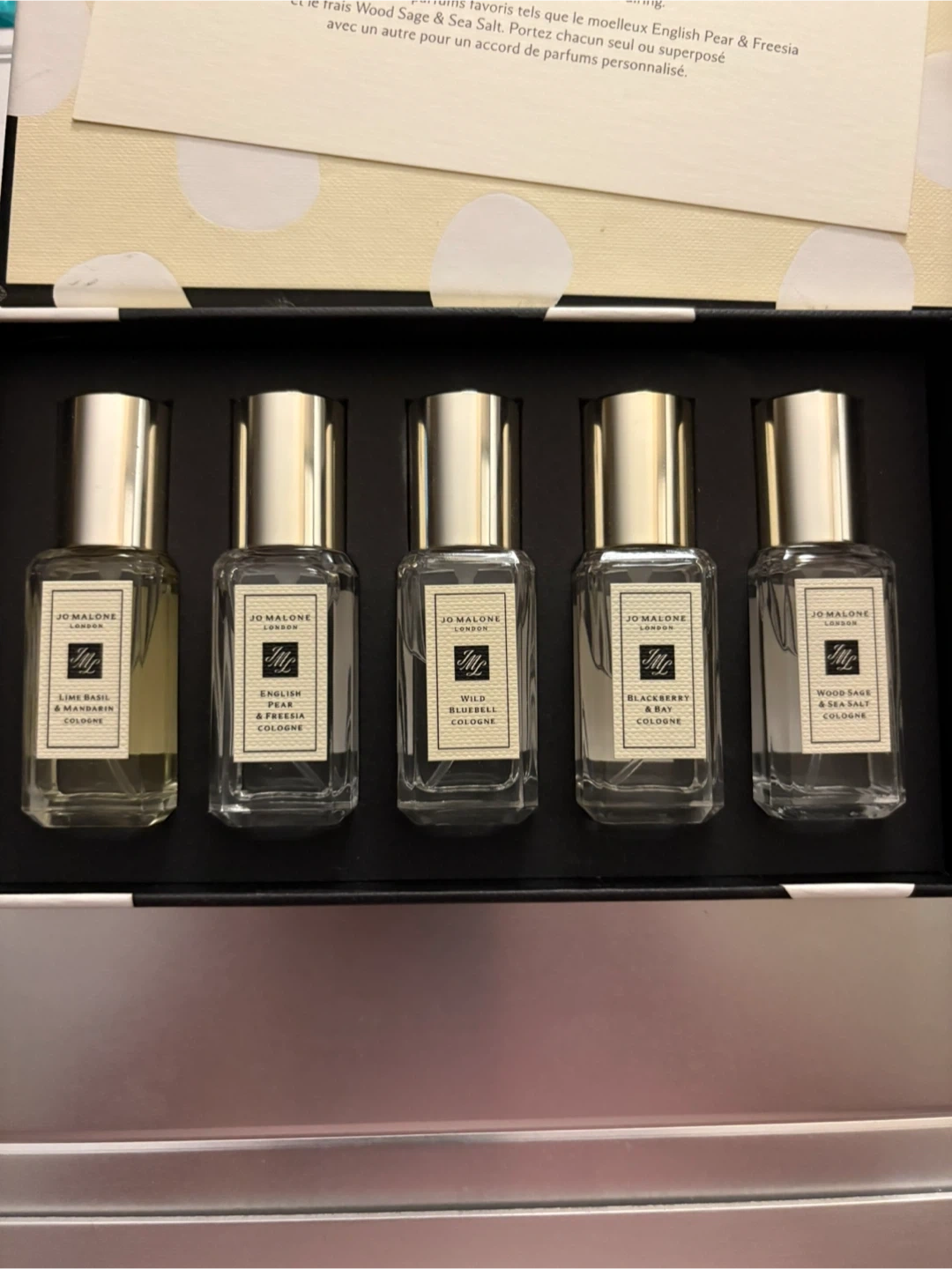 Selling a new, never used Jo Malone Cologne Intense Collection set! This includes five 9ml colognes: - Lime Basil & Mandarin - English Pear & Freesia - Wild Bluebell - Blackberry & Bay - Wood Sage & Sea Salt Box is included! A great way to try before buying a larger bottle. Was gifted this but I already have most of them in my collection. Pick up Yonge and Eglinton.