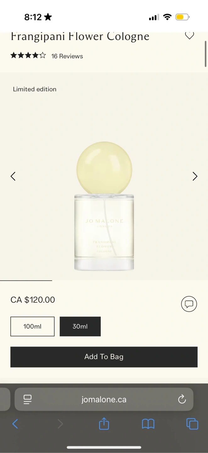 67Selling a bottle of Jo Malone Frangipani Flower Cologne. It's a limited edition scent and comes in a 30ml bottle. Originally $120.00 before tax brand new
