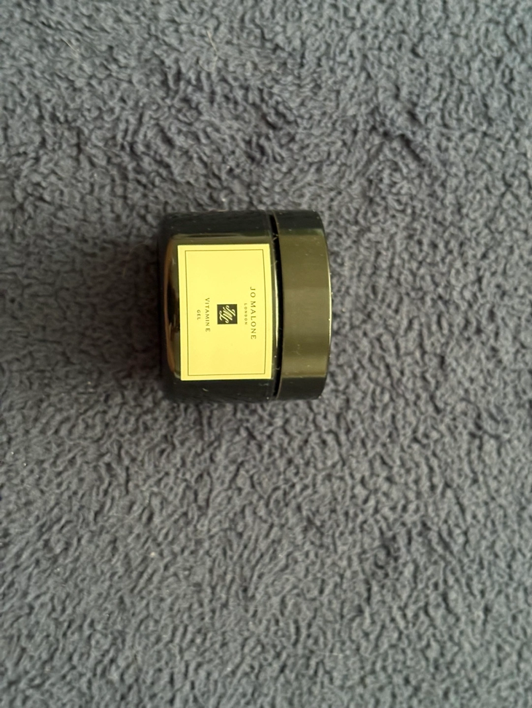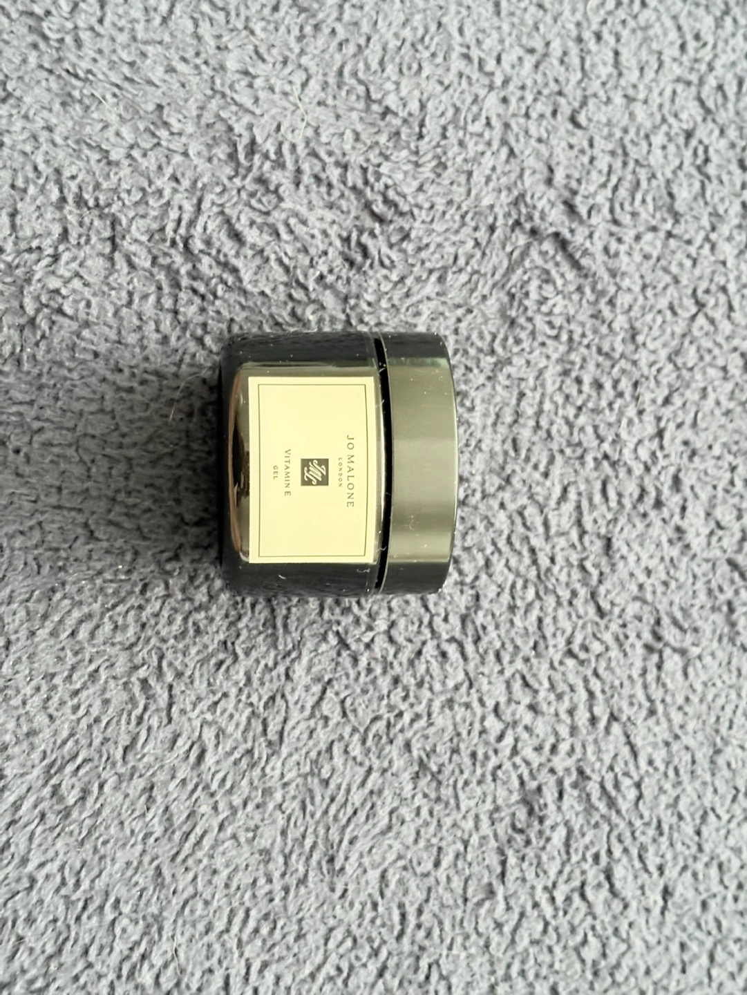 63Small jar of Jo Malone Vitamin E Gel. Black jar with black lid. Unopened.