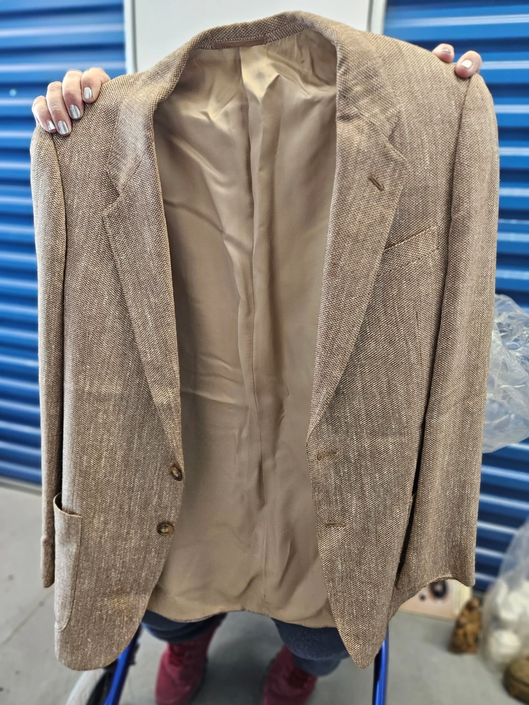 This is a men's blazer by Alan Cherry, made by Marzotto. It's a classic brown tweed style, perfect for layering. The blazer was made in Italy.